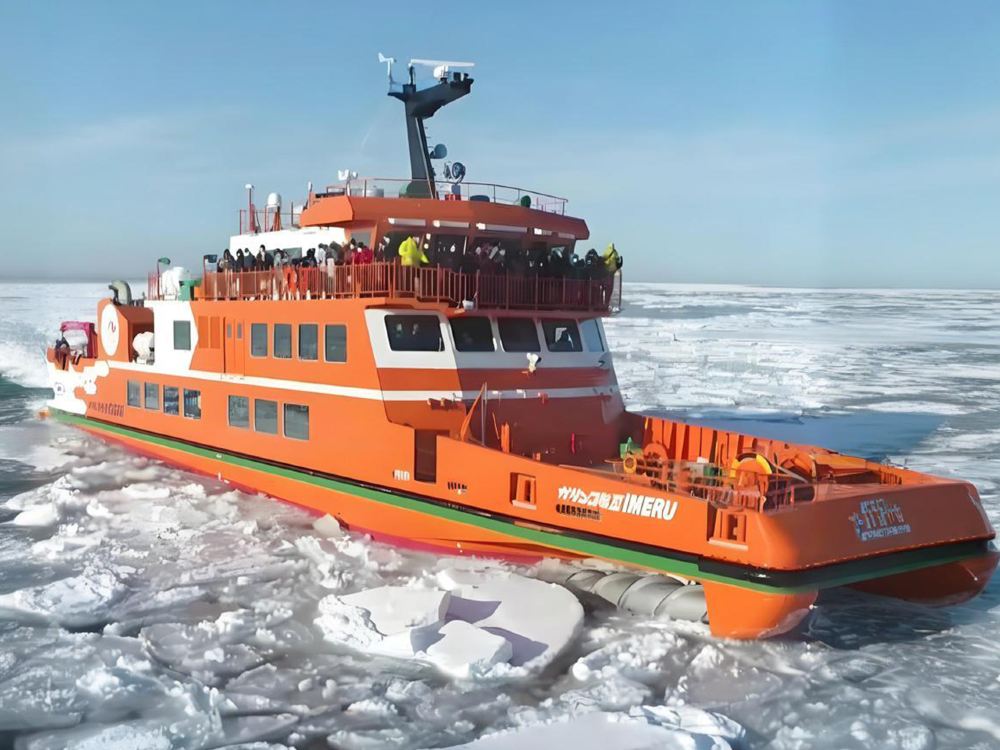 ▲ ▼流冰碎冰船「GARINKO GO Ⅲ・IMERU」(乘船体验1小时,船票已包含) 船首巨大的螺旋桨轰隆破冰前行,震撼感十足!近距离观察碎冰浮起,体验北海道冬季代表性的流冰奇观。航行于鄂霍次克海,还有机会遇见白尾雕、皇雕与可爱的海豹。在金色霞光中静赏日落,感受天空与海面交织的浪漫氛围