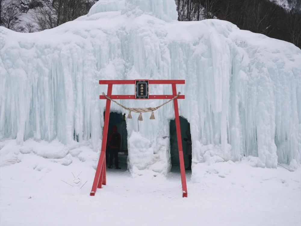 ▲ 每年冬季,北海道层云峡会举办盛大的冰瀑祭,将河谷中的瀑布与溪流打造为梦幻的冰雪世界。夜晚点灯后,巨大的冰柱和冰瀑在灯光映照下闪烁五彩光芒,宛如童话中的冰雪宫殿。
