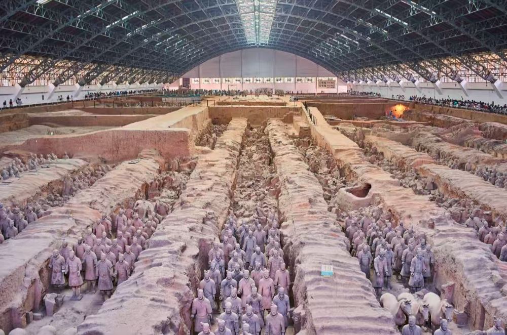 二号坑:多兵种混编精锐*战略价值,面积6,000平方米,曲尺形布局,是秦,灵活战术”的缩影。含弩兵、骑兵、战车、步兵四大兵种,预计出土1,300件俑、500余匹马及89乘战车。