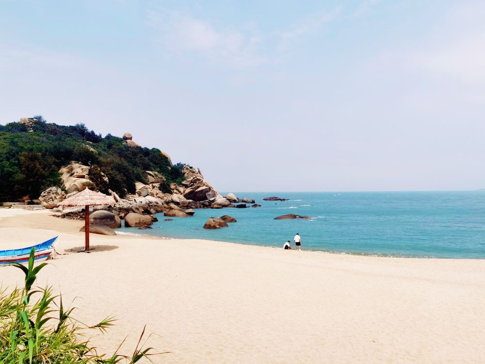 ▲ 洲岛上海岸线最长的沙滩岛上渔民在此撒网捕鱼。