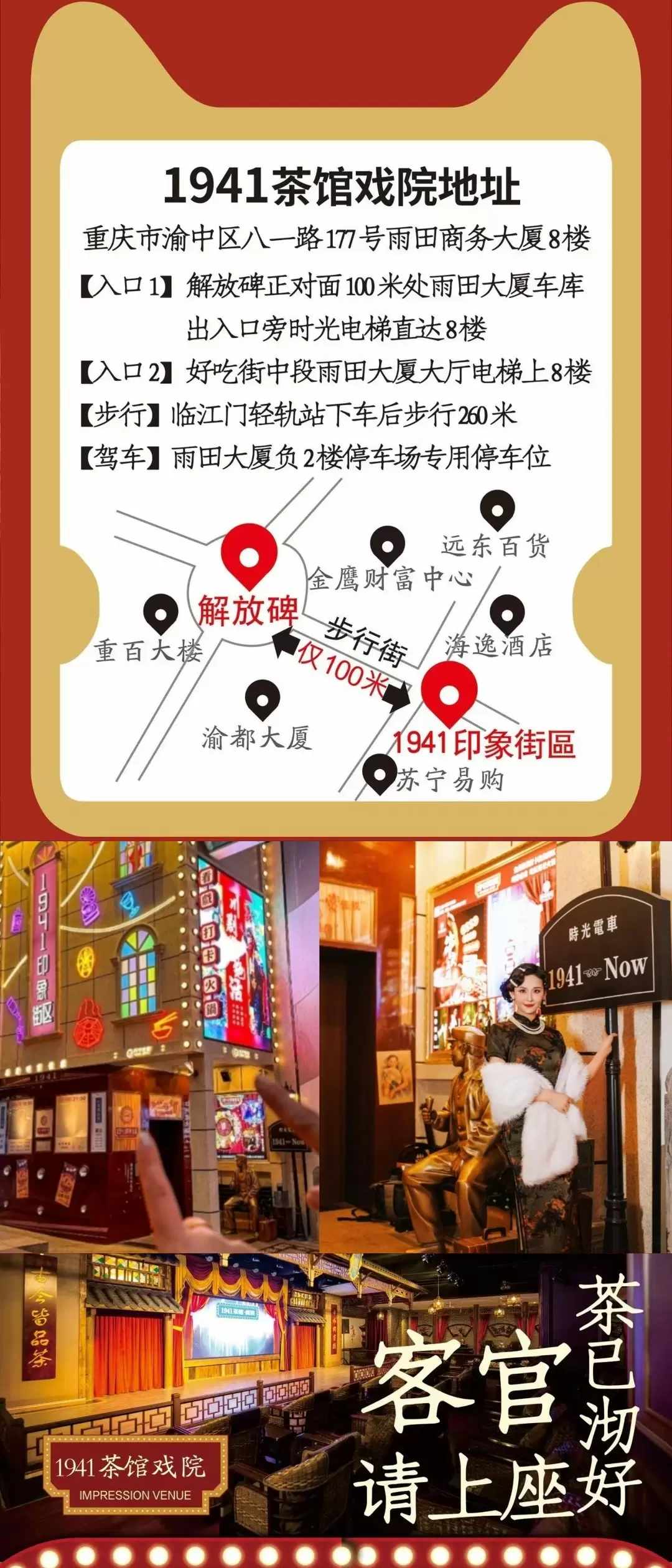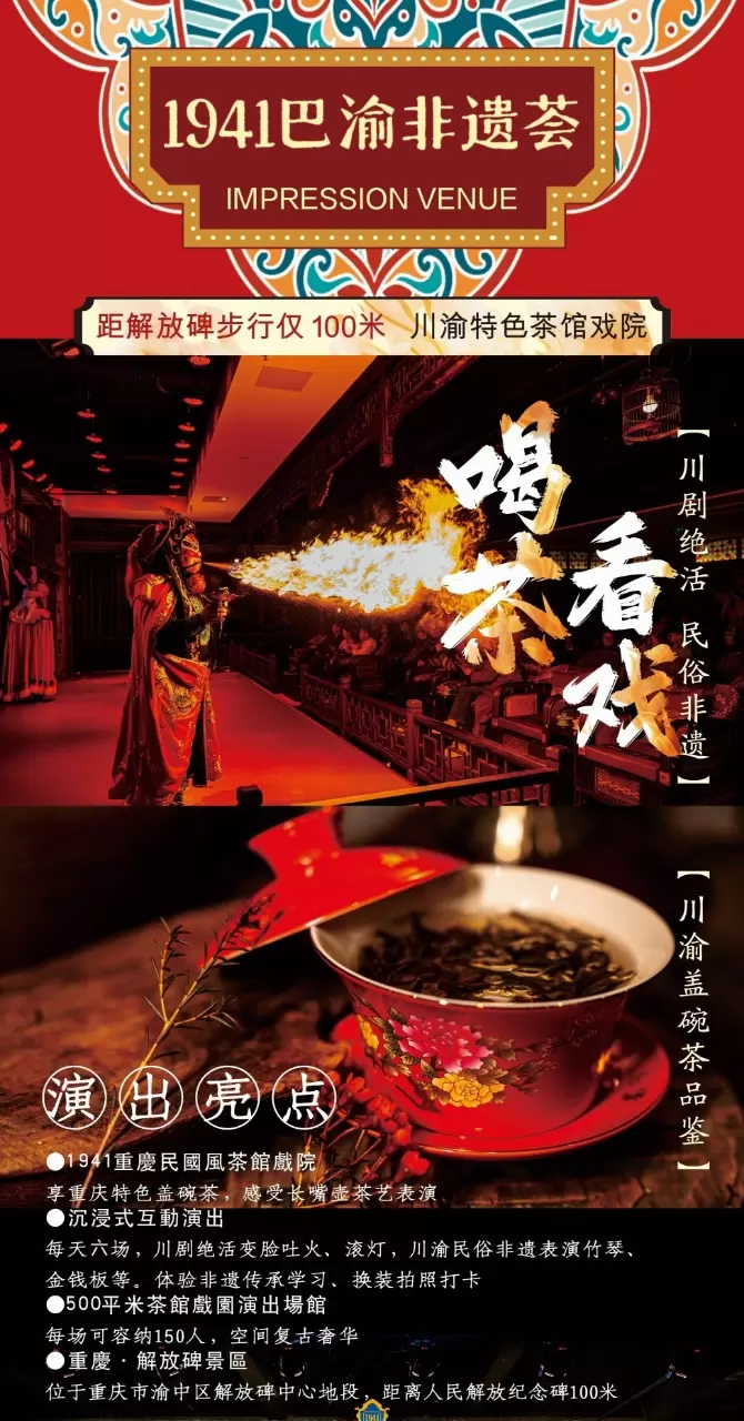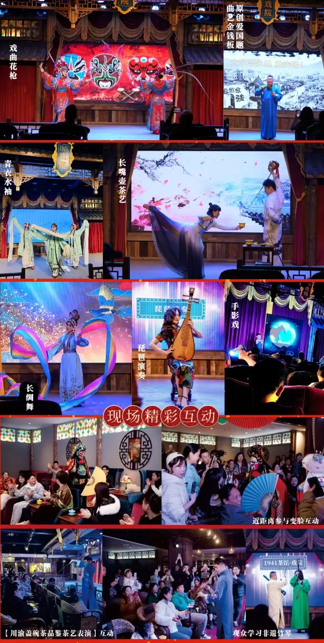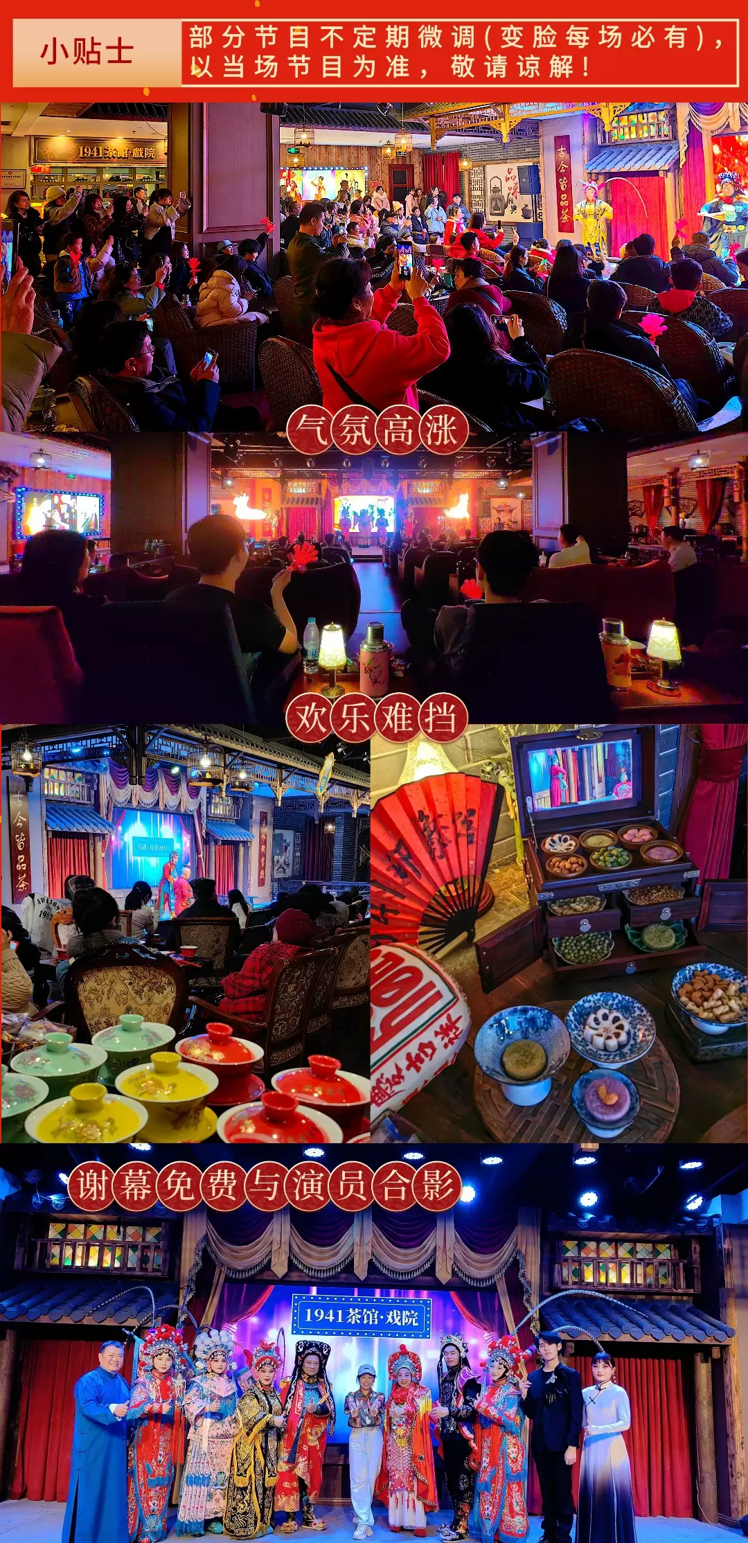 重庆1941茶馆·戏院互动沉浸式演出【非遗传承演出节目花鼓,评书,快板,茶艺,变脸,戏曲随机演出4个节目】