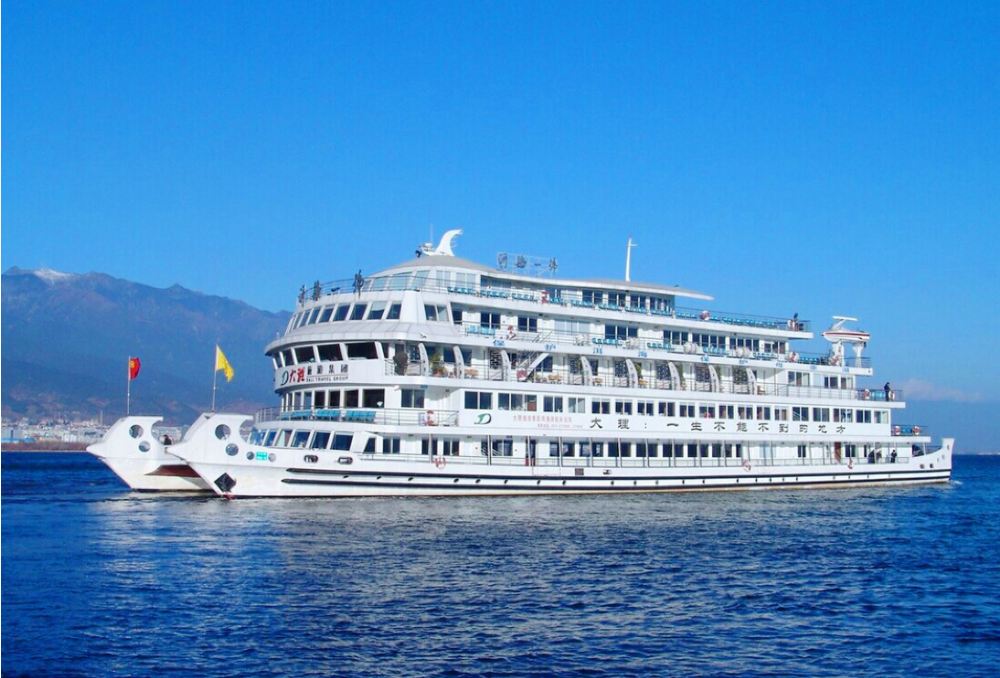 ▲ 豪华游船是云南省内规模大、档次高、设施齐全、速度快的游船,额定载客量从400人至950人不等。游船上设有KTV包房、民族歌舞表演厅、商品部和五朵金花摄影部等多功能设施,游船上开展具有浓郁民族特色的"白族三道茶歌舞表演",让您领略白族人民独特的民族风情歌舞。