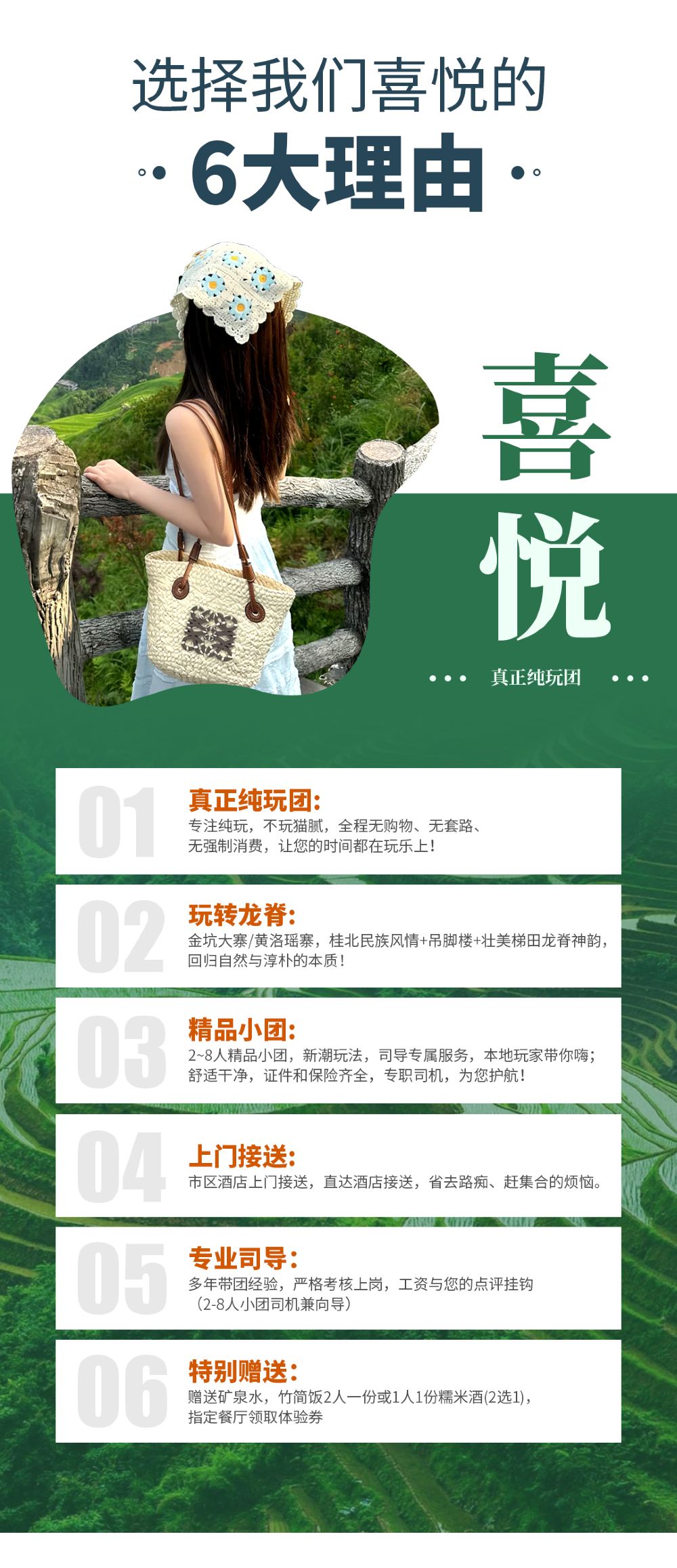 桂林龙脊梯田+金坑梯田一日游【纯玩8人小团|上门接送】【[纯玩保证]品质纯玩之旅,全程无购物,无任何强制消费!】