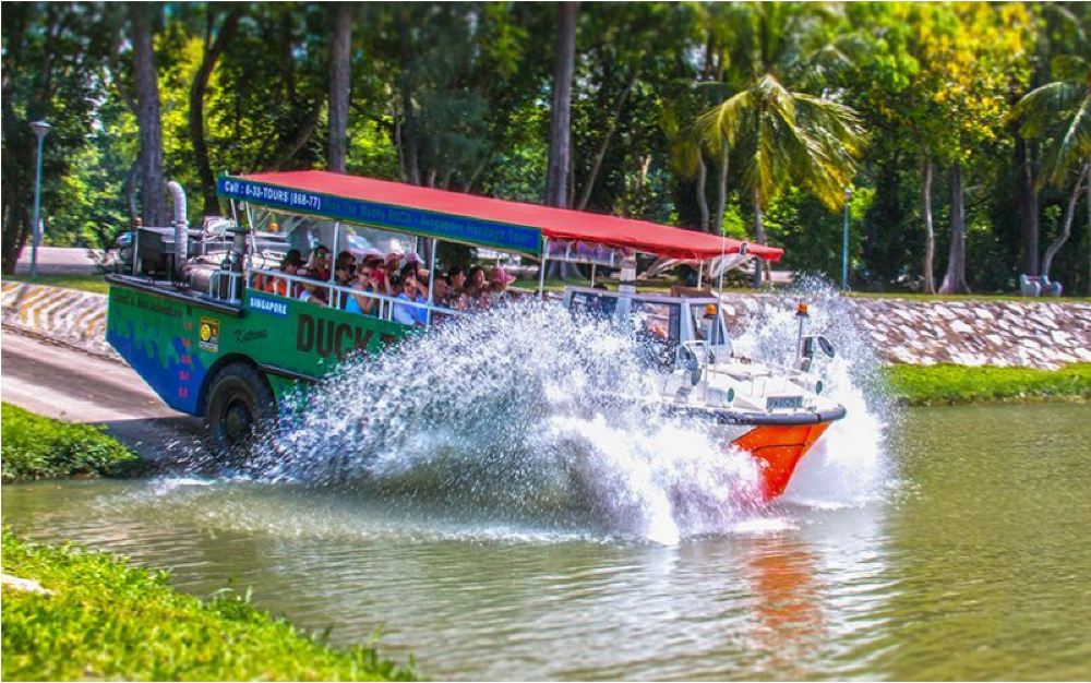 ▲ 陆上30分钟、水上30分钟 ,用不同视角探索新加坡的多样风貌 乘坐以二战时期的越南战车为模型的水陆两栖鸭子船,享受独一无二的游览旅程 近距离欣赏新加坡的迷人天际线、历史地标与美丽的海湾风光 新加坡旅游奖得主,是游客和新加坡当地人评选的zu佳家庭出行体验游