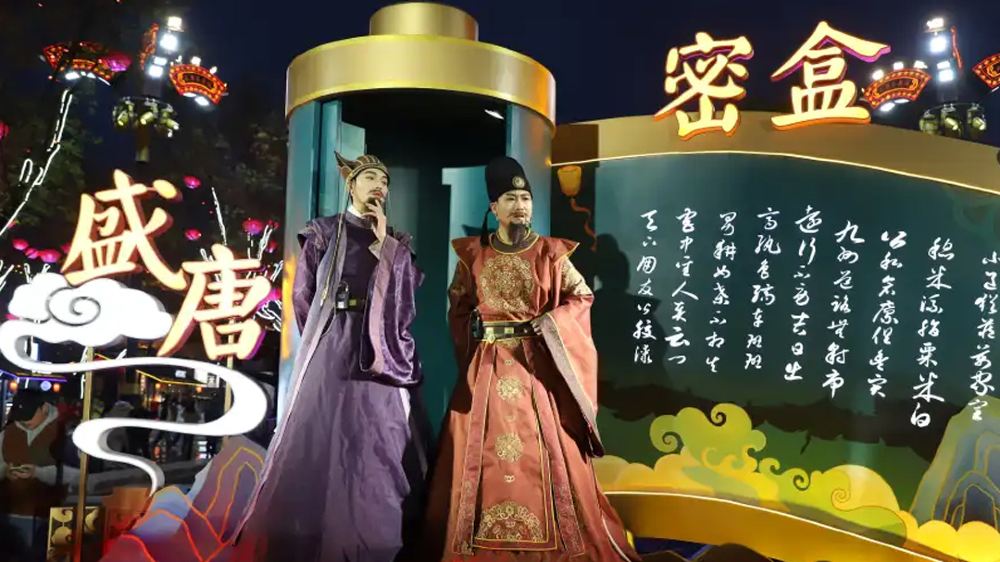▲ 以下演出是大唐不夜城景区内的外观演出,演出时间不定,演出地点及内容可能会受天气、气温等影响变更或取消,敬请谅解。 1、大雁塔水舞光影秀 2、太白长安行 3、盛唐密盒 4、琵琶行 5、青莲剑歌 6、盛世清音 7、十部伎丝路和合 8、诗书百晓生 9、华灯太白 10、长安舞会音乐季 11、唐韵不倒翁 12、旋转的胡旋