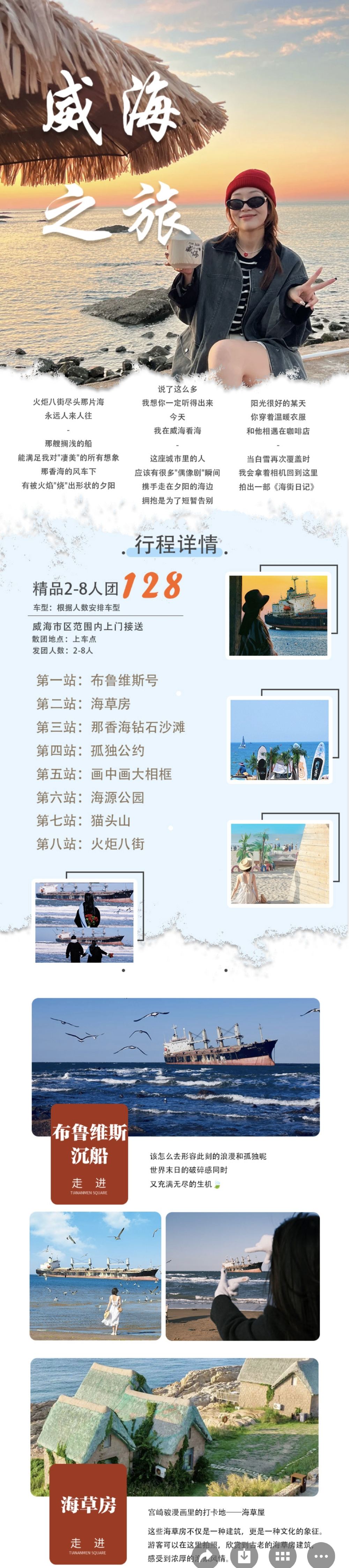 【市区上门接送】威海天鹅湖+布鲁维斯9大网红景点赠沙雕门票【[精致出片]提供蓝围巾、花束拍照道具,赠送威海纪念币和沙雕艺术园区门票。】