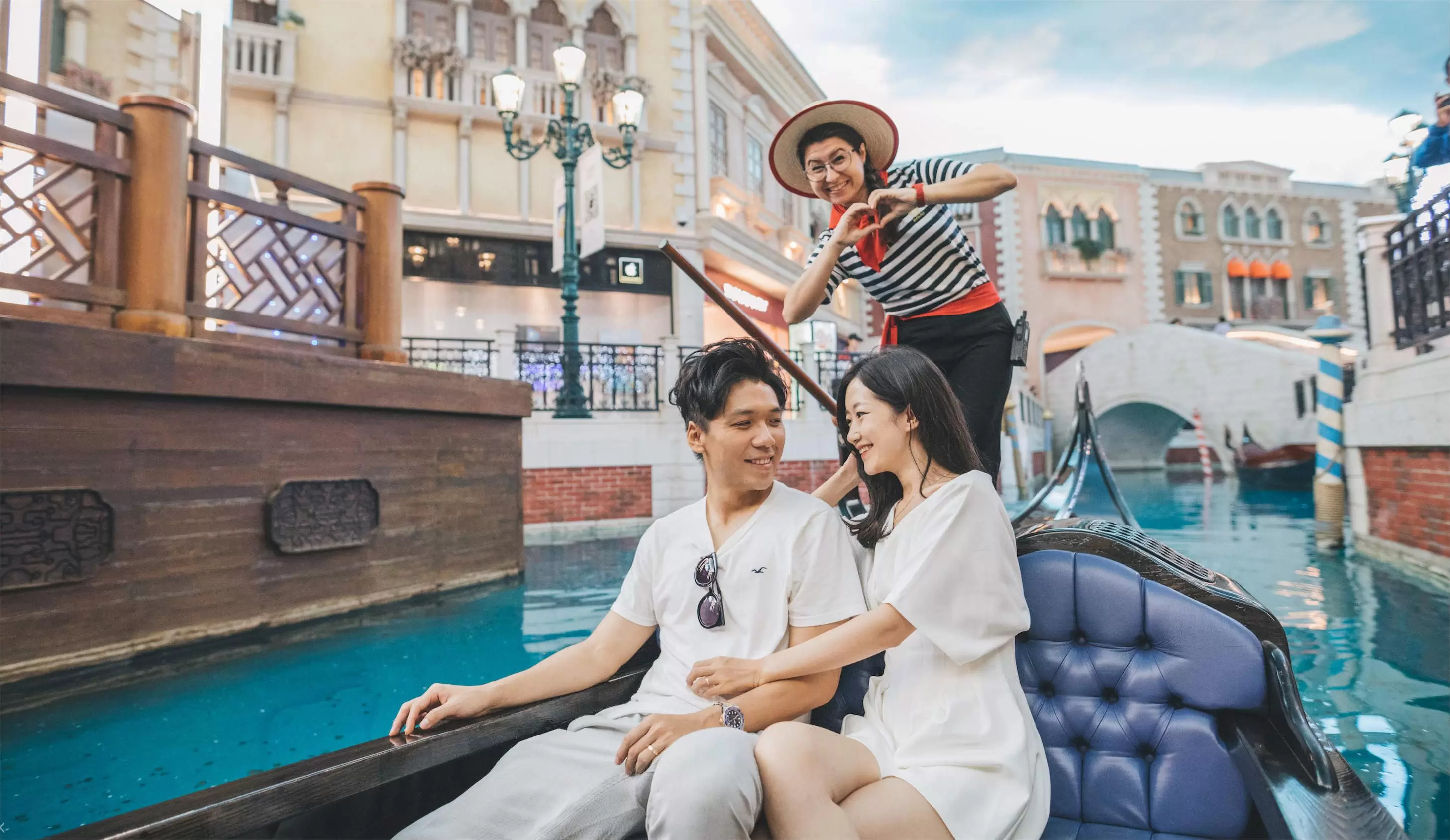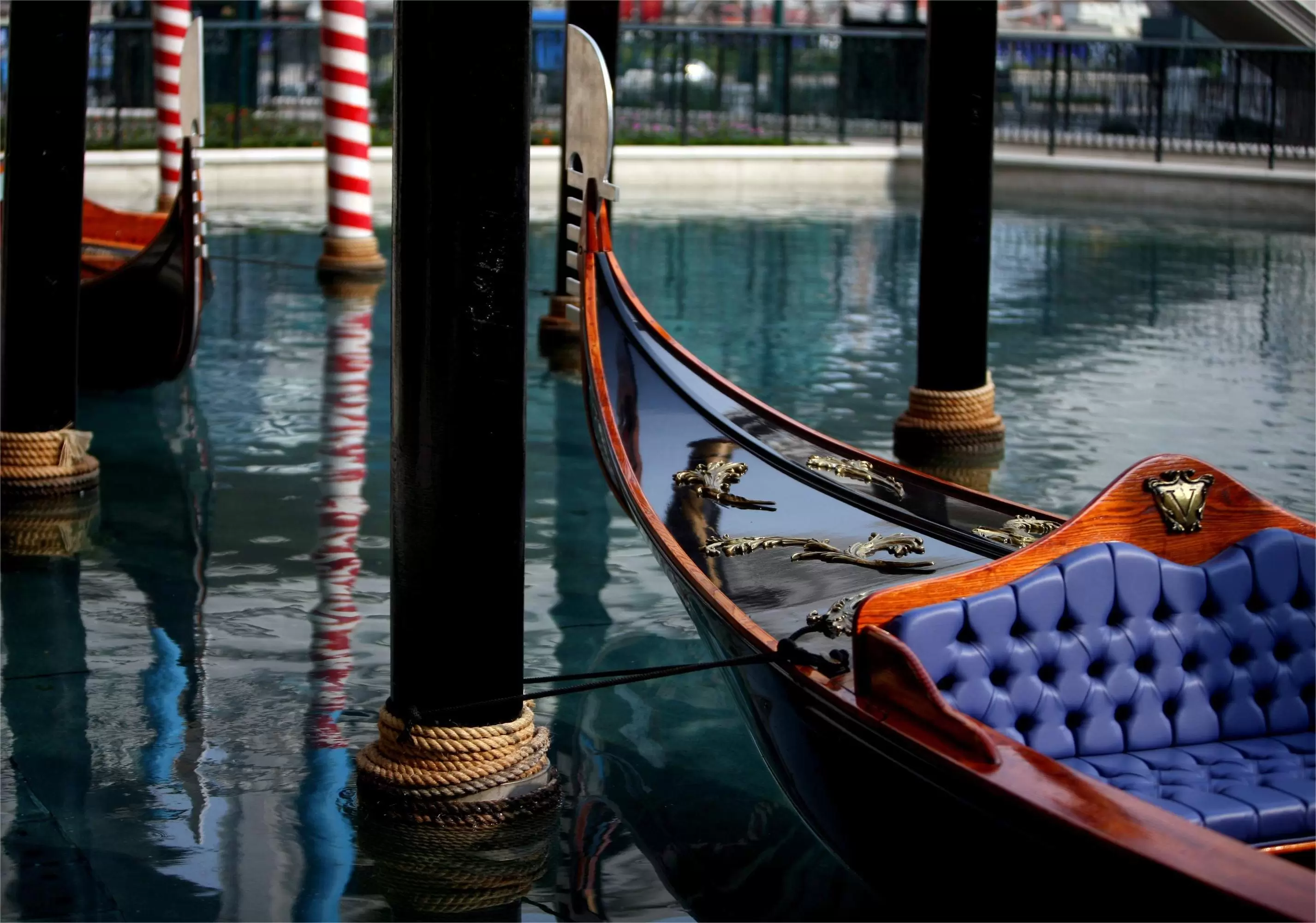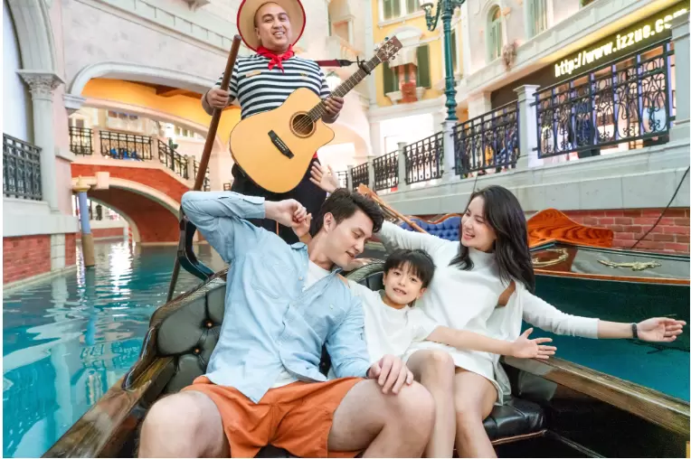 在威尼斯,贡多拉虽为一叶轻快小舟,却是当地重要的水上交通工具。坐在其上,听著摇浆的船夫唱出悠扬的歌声,欣赏著两岸的义大利建筑。其实不必到义大利也能感受这般滋味!澳门的威尼斯人酒店在室内挖了一个大型水池,分为大运河、圣路卡运河及马可孛罗运河,在这里你也可以坐上贡多拉船,船尾也有为你献唱的船夫,两岸的建筑和天花板的微暗天色,会让你有置身于歌剧院般的华丽布景内。