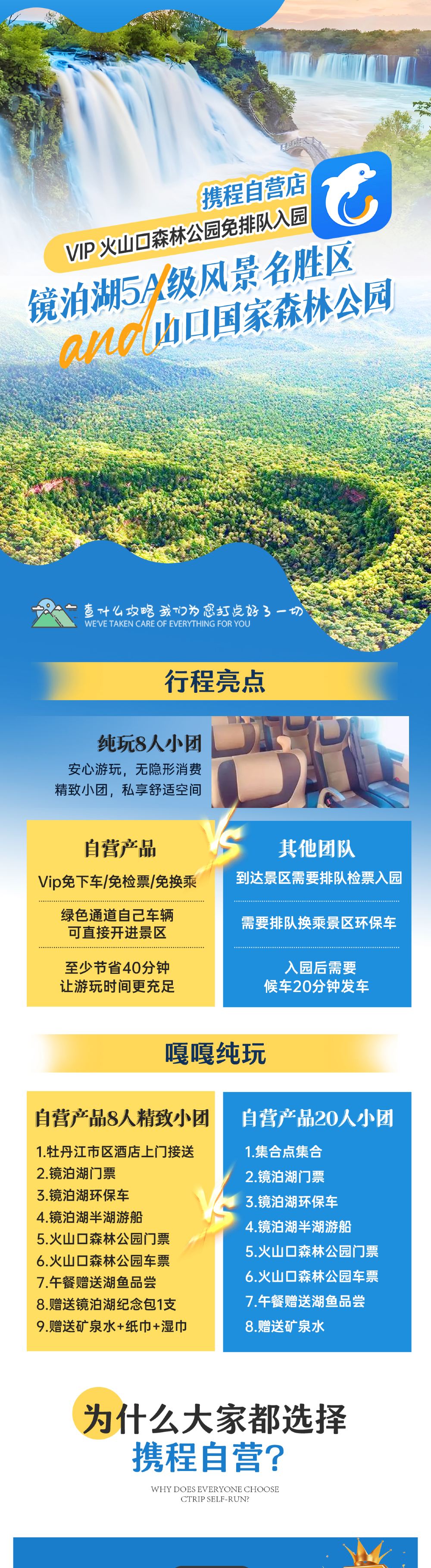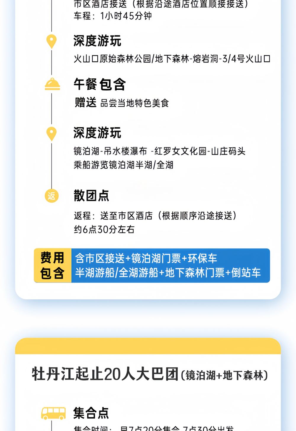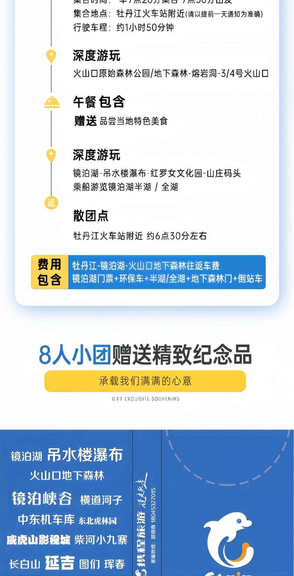 镜泊湖+火山口森林+吊水楼一日游【Vip自营◆纯玩小团】【● 【优选景点】8人精致小团费用包含往返车费市区接送+镜泊湖景区门票丨镜泊湖环保车丨镜泊湖半湖游船丨】