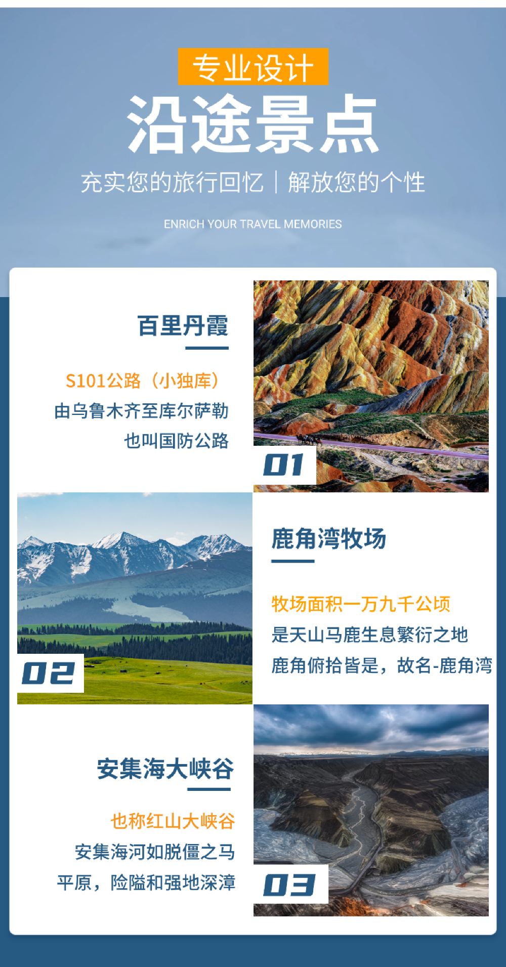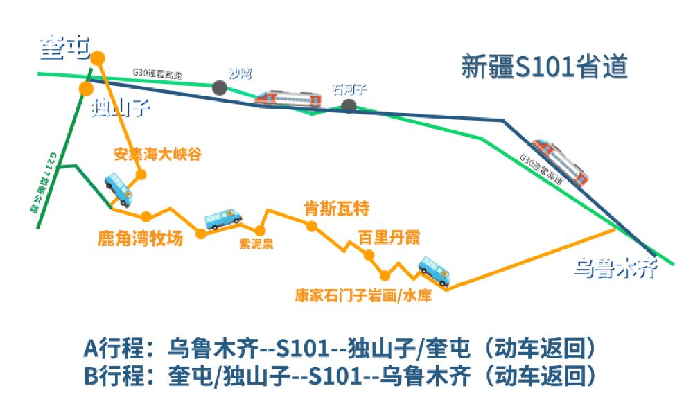 行程B:奎屯独山子出发。结束送乌鲁木齐动车返回