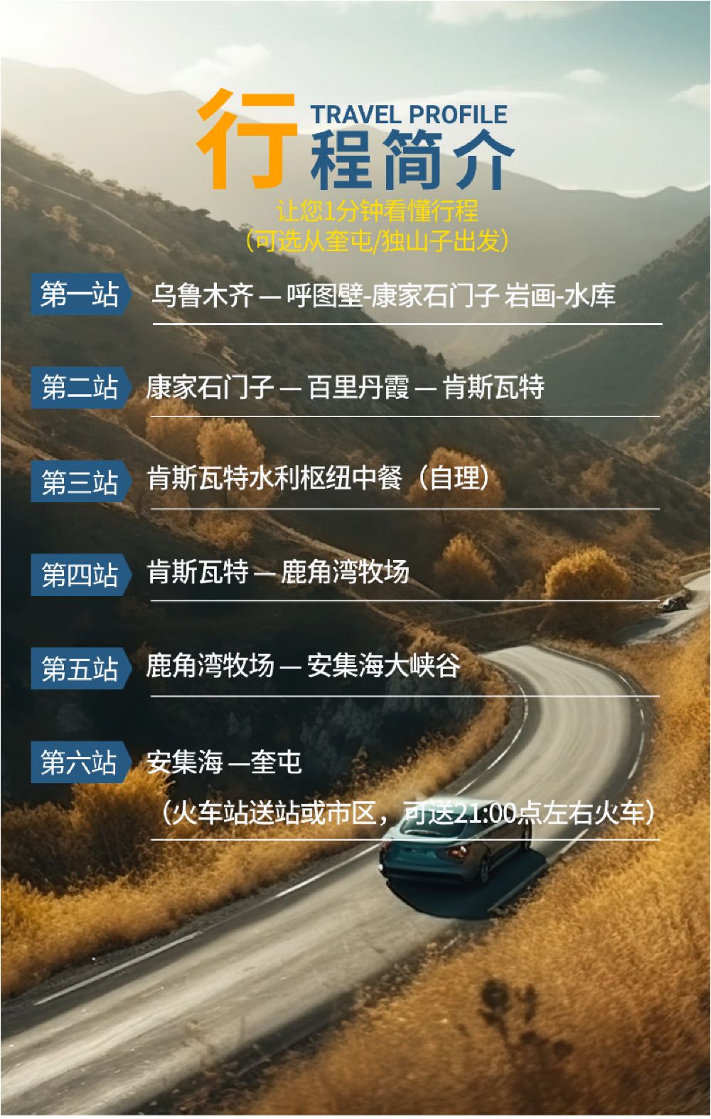 行程A:乌鲁木齐出发,结束送奎屯动车返回