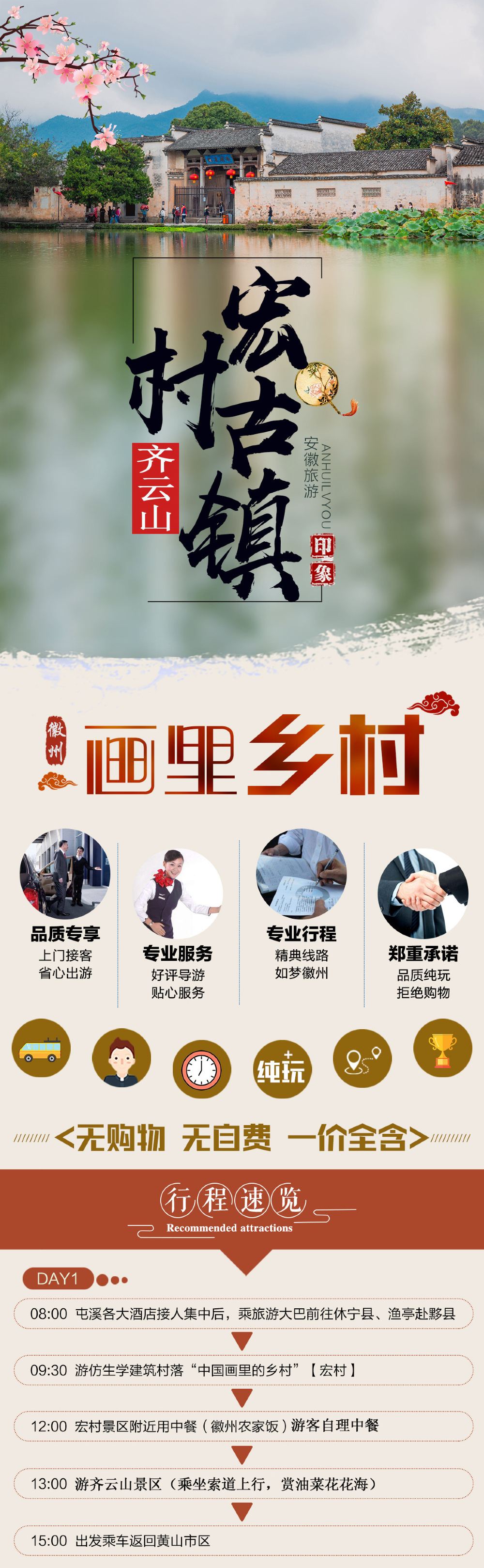 宏村齐云山一日游产品:单独车导4人才能发班;