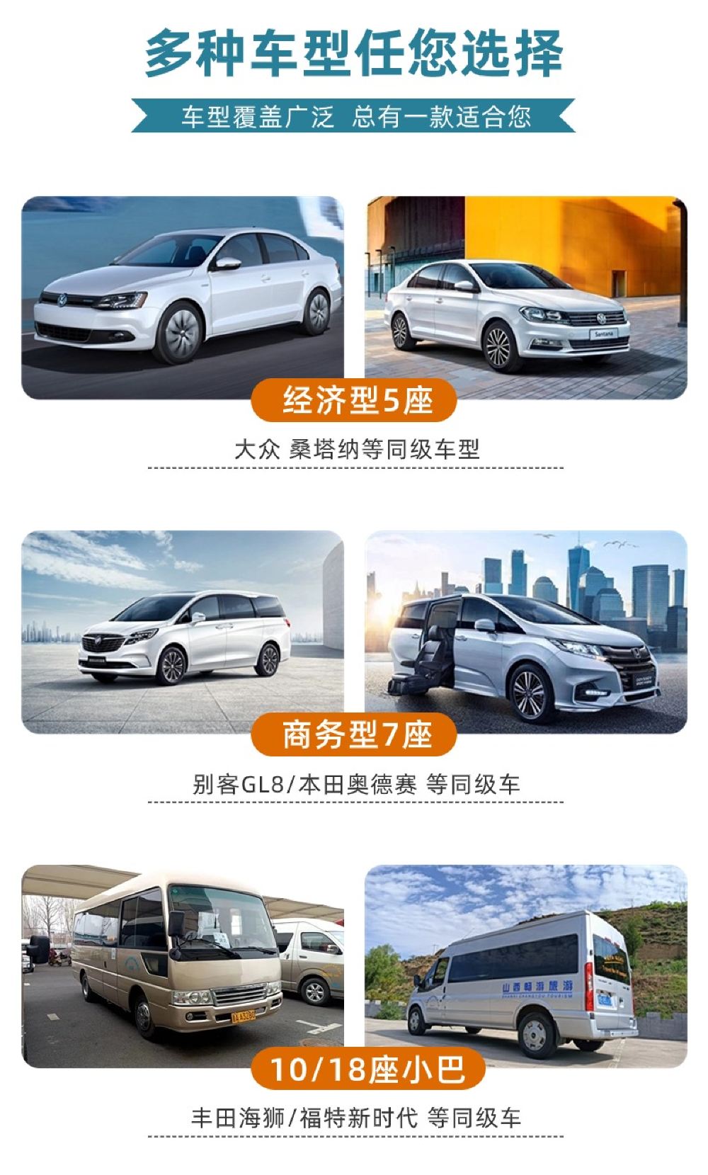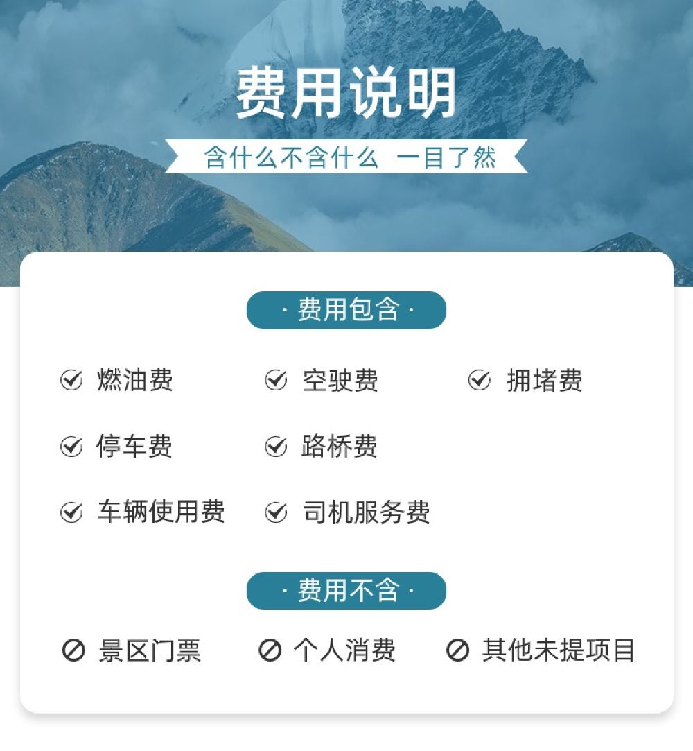 此包车不与他人拼车亲,市内上门接送包车服务时间大致最早6点出发,最晚景区关门返程 包含往返车费司机费用,包含停车费油费等