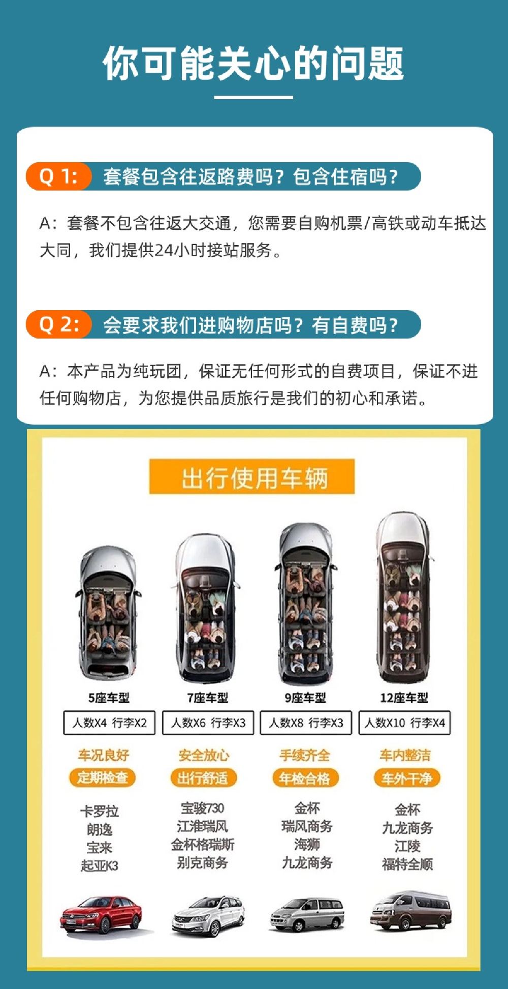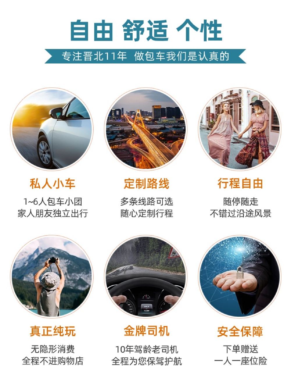 大同起止,对应套餐,出游行程顺序合理自定,时间自由安排,和司机商量,咨询客服可定制路线