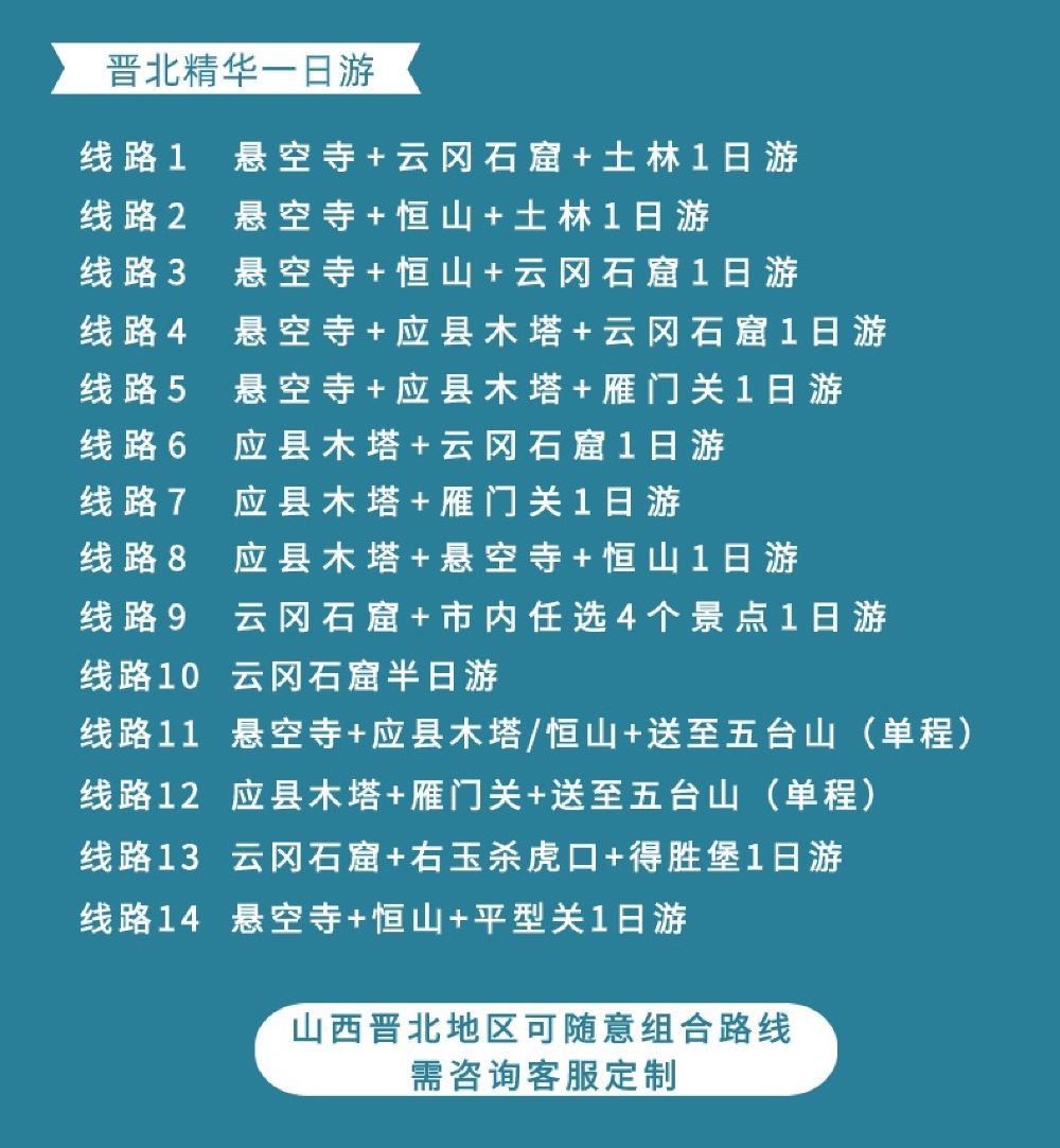 大同对外展示行程 报价(套餐外行程请咨询客服下单)