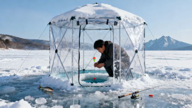 ▲ 雪落冰面无痕,鱼钩牵动瞬间,便知春在潭心隐