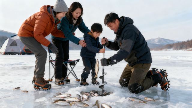 ▲ 凿开天池冰,钓一竿雪山倒影进渔笼