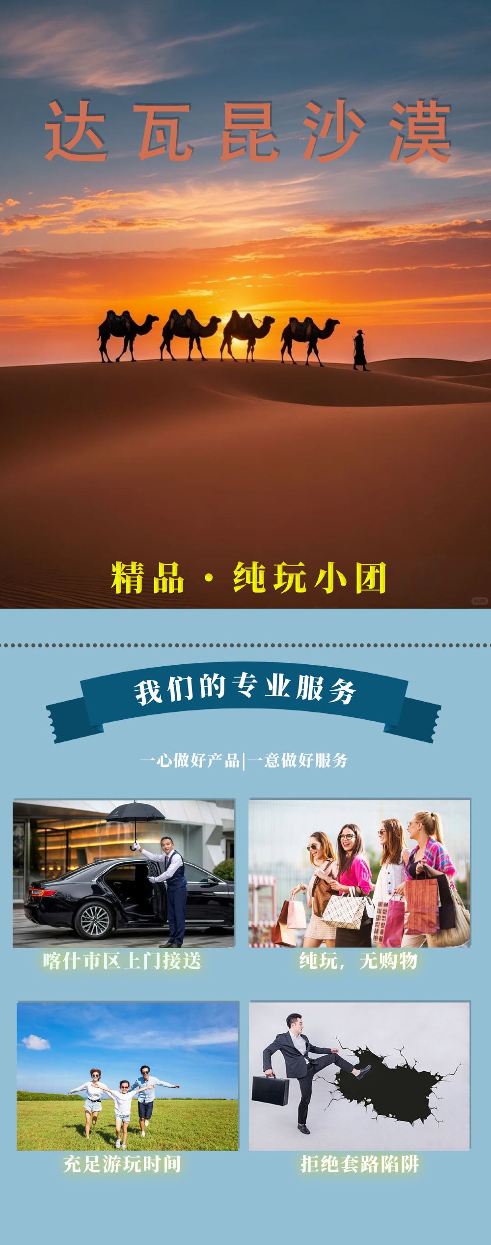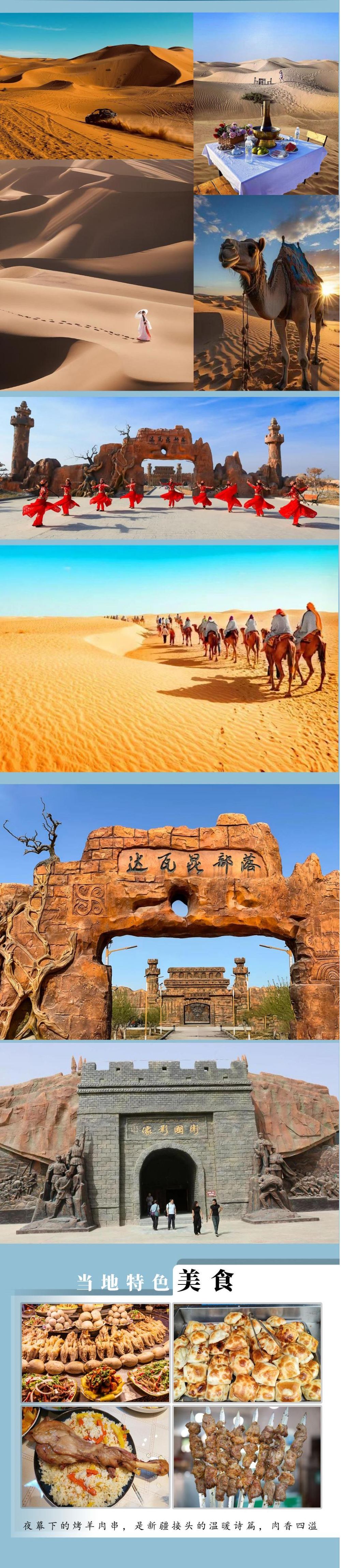 2、全程无购物无自费。景区内有设购物店,此为景区行为,非旅行社安排。景区内有自费游玩项目如沙漠越野车、骑骆驼等,请自愿选择!