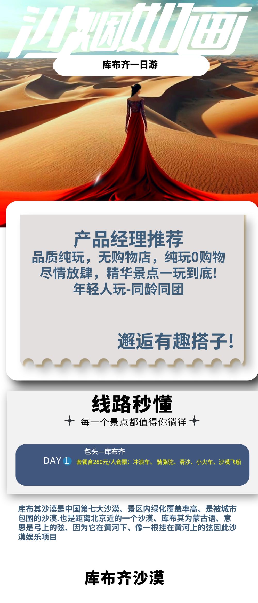 内蒙古库布齐沙漠一日游【+280套票+纯玩无购物】【[旅行畅游]包头出发,天天发团,一天往返,带您感受不一样的蒙古族风土人情。】