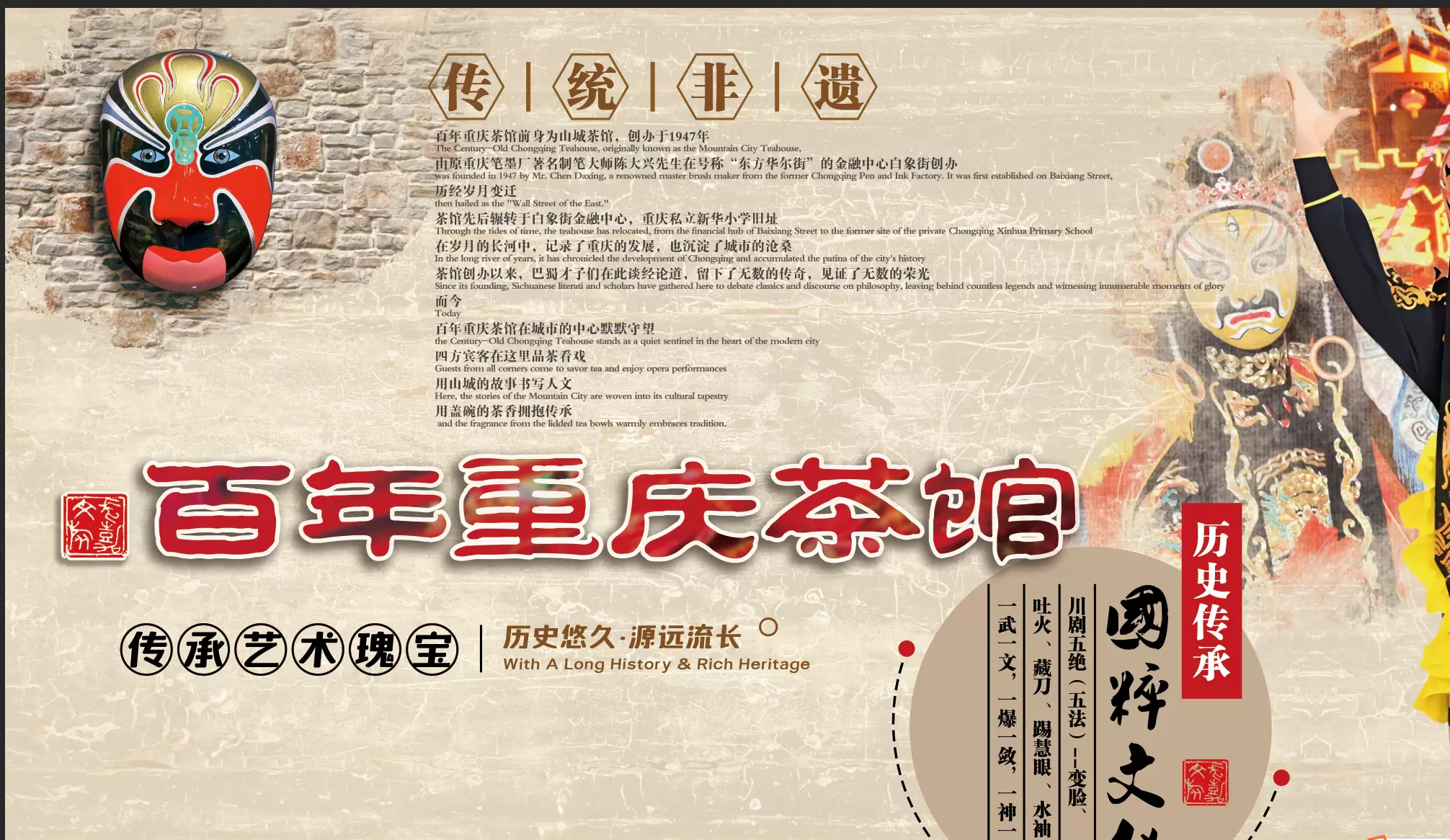 百年重庆茶馆非遗演出【变脸吐火、滚灯、中华杂耍等民俗节目轮番上演 带您感受川剧艺术的无穷魅力 】