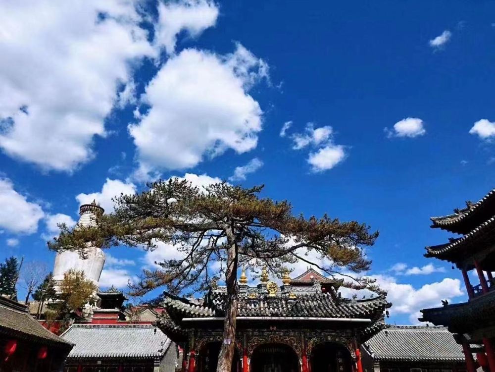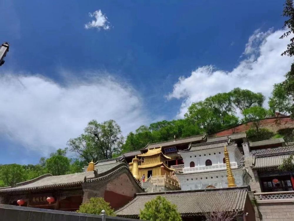 五台山标志建筑大白塔所在寺庙—【塔院寺】(外观寺庙,合影留念),参观文殊菩萨祖庭、真容显圣荞麦头文殊菩萨像所在地—【殊象寺】。