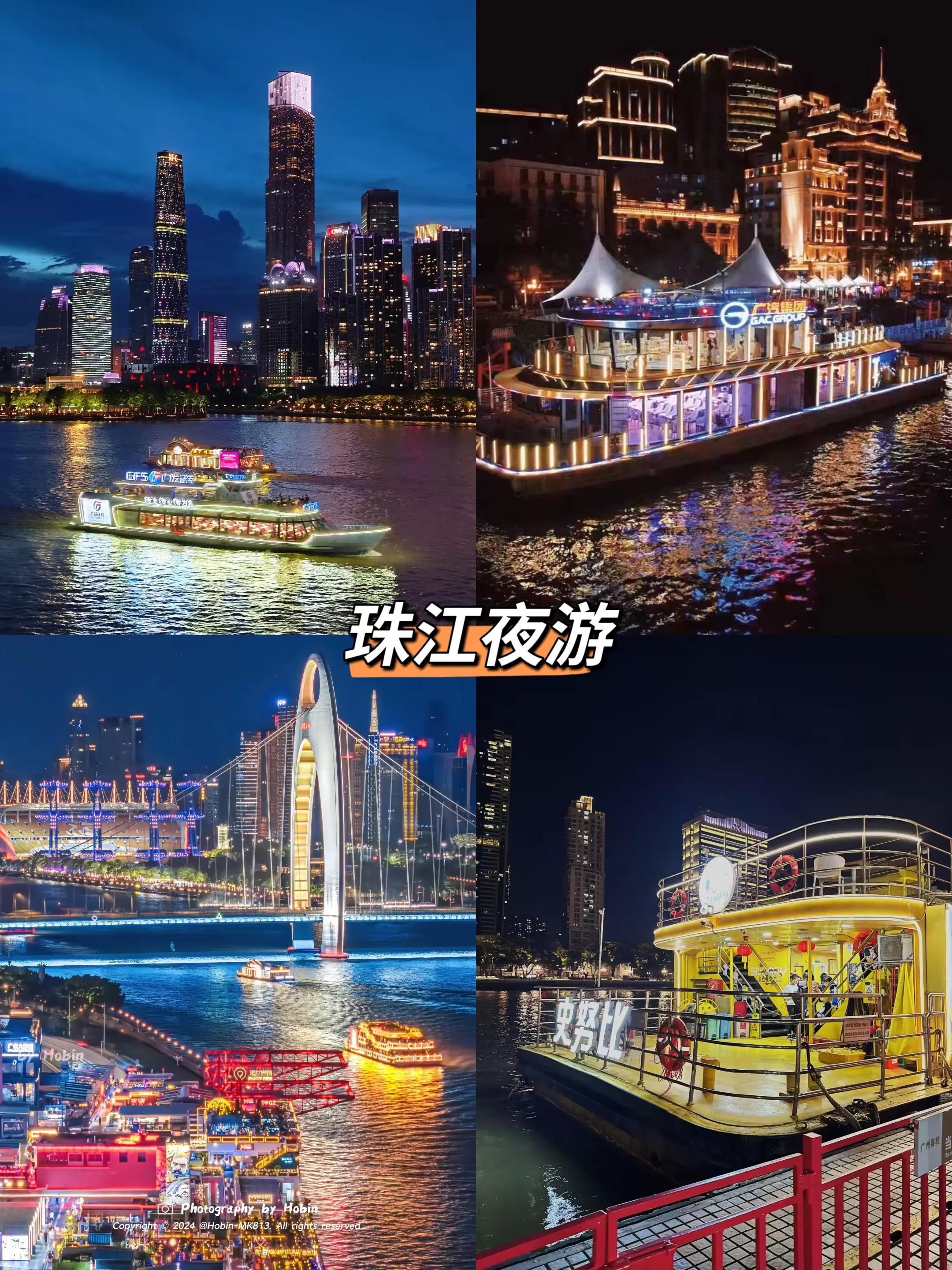 广州旅游名片“珠江夜游”,乘船观赏珠江两岸城市夜景
