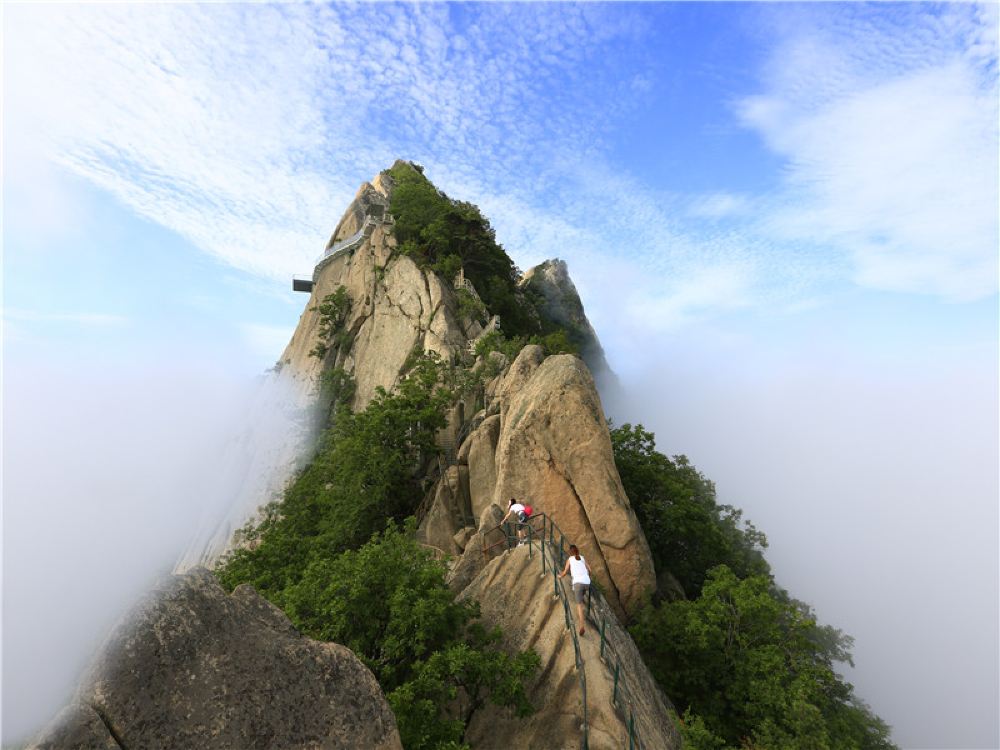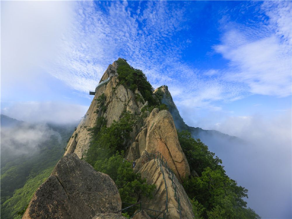 凤凰山十大美景:石棚避暑、涧水飞涛、斗母圣境、山云铺海、苍松伫月、怪石凌空、松径寻秋、天池在望、垒障留云、东地瀛洲、玻璃栈道以及“迎客松”和凤凰山Z险处的“老牛背”。