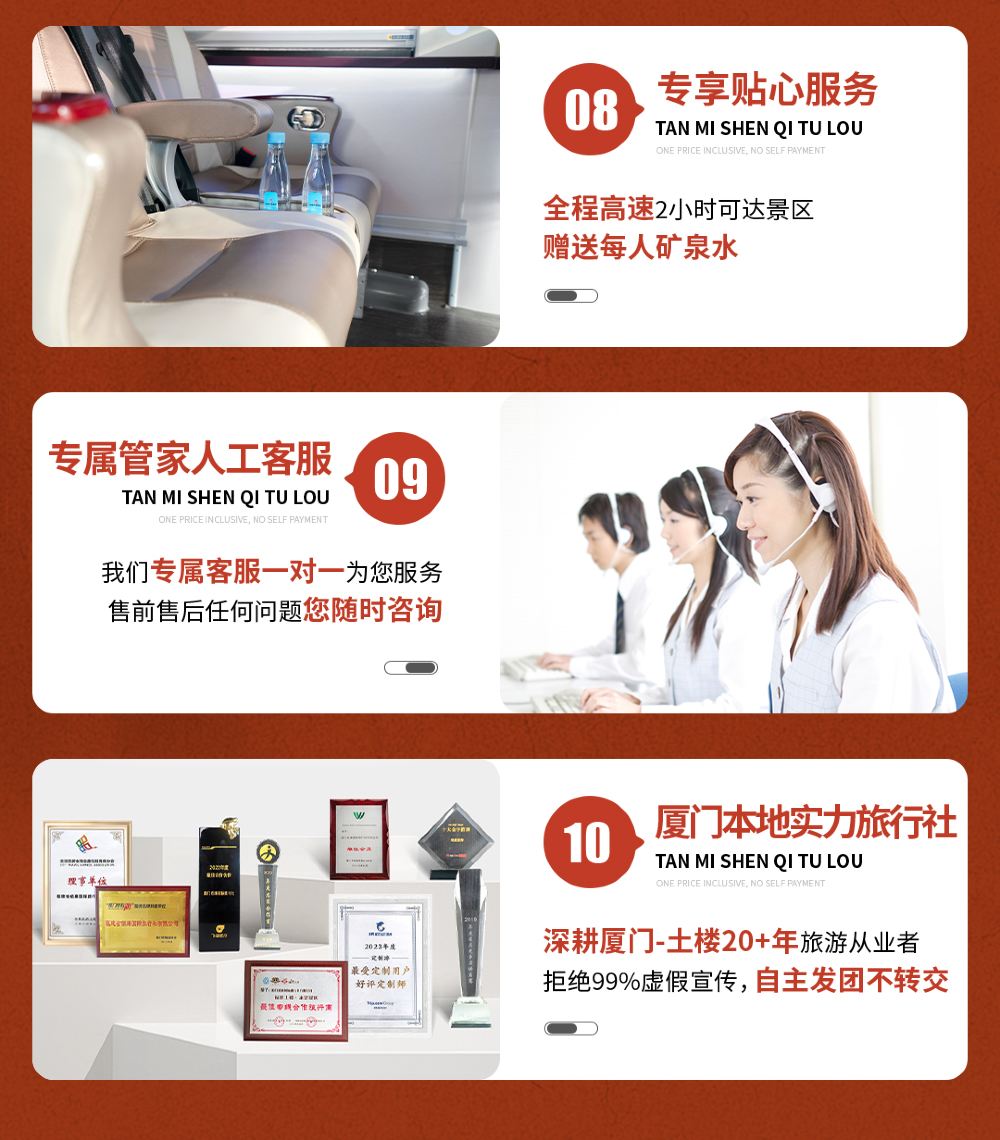 5、厦门出发土楼行程中沿路如果有工作人员,会讲解当地人文景观及吃喝玩乐等风土人情,例如:水仙花、盐鸡、片仔癀、漳州古镇等;绝非诱导购物,不感兴趣的不予理会或忽略即可。