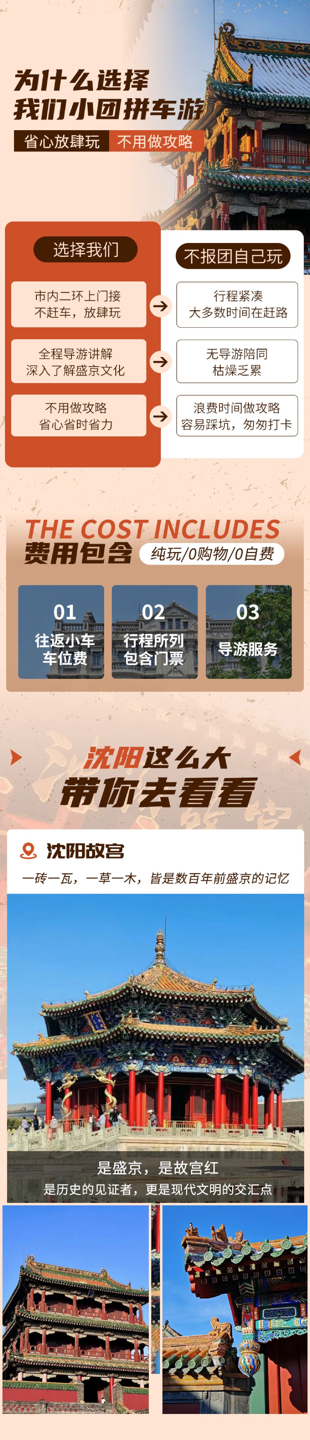 沈阳故宫+张学良旧居+清昭陵一日游【导游◆上门接送◆6人团】【[高端品质团]真,无任何强制消费,进店必赔偿,只做细致服务,让您不虚此行】