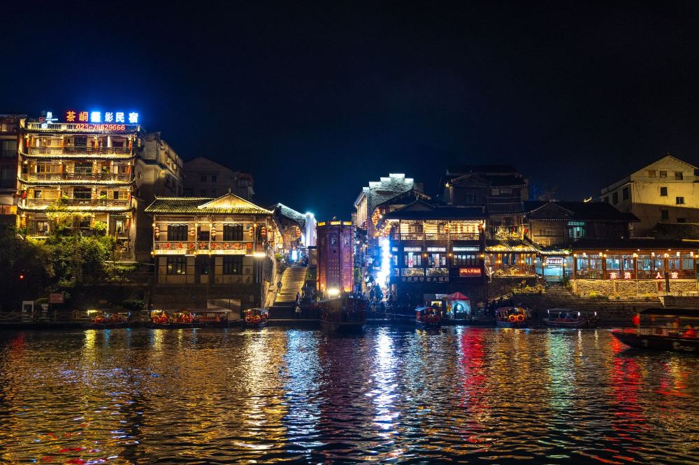 ▲ 一脚踏三省,看湘渝黔风光尽收眼底。边城茶峒景区,地处三省交界,站在三省观景台,清水江蜿蜒而过,两岸吊脚楼错落有致,独特的地理风貌,让你领略不一样的山水魅力。