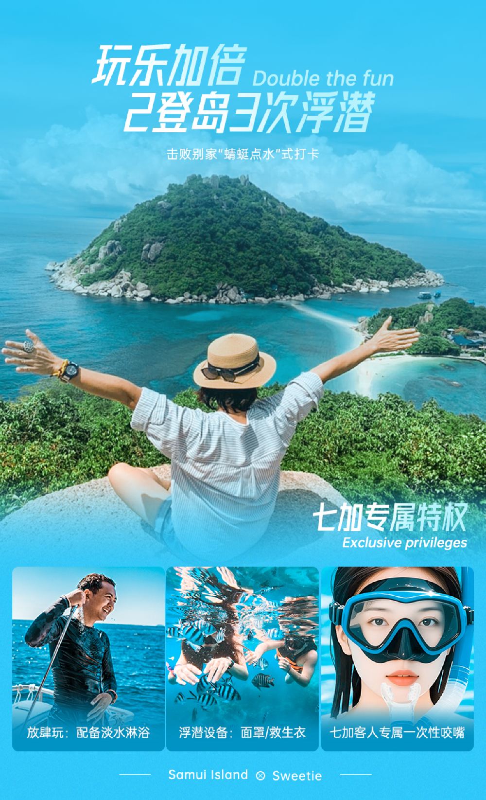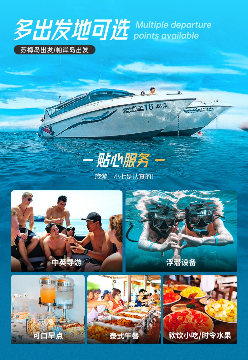 苏梅岛:涛岛+南园岛一日游快艇出海浮潜 酒店接送含午餐【快艇畅游潜水胜地涛岛南园岛,轻松打卡超美海景胜地】