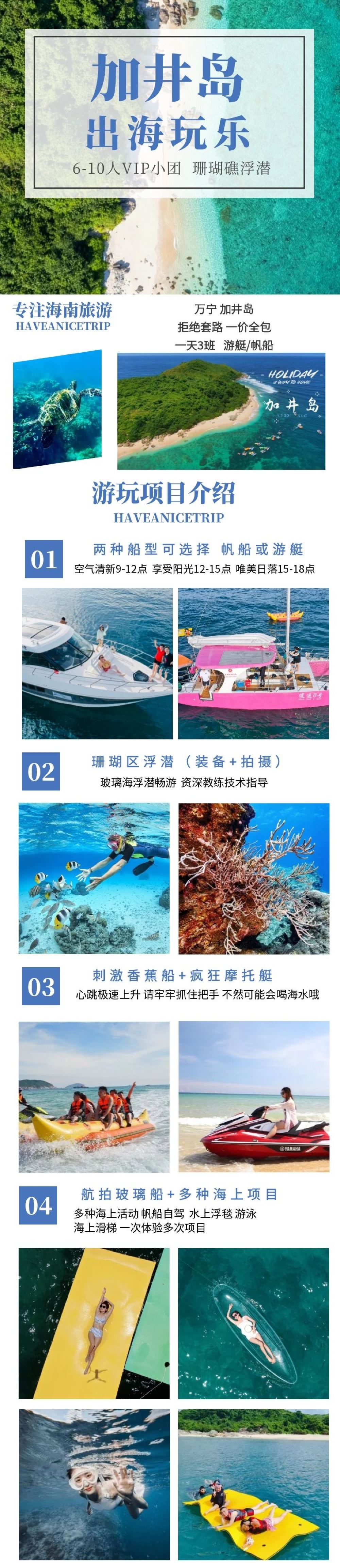 万宁加井岛6-10人精致小团 高端游艇 浮潜 香蕉船 摩托艇【玻璃海珊瑚礁浮潜 各种水上项目 赠送水下拍摄 没有任何二次收费】