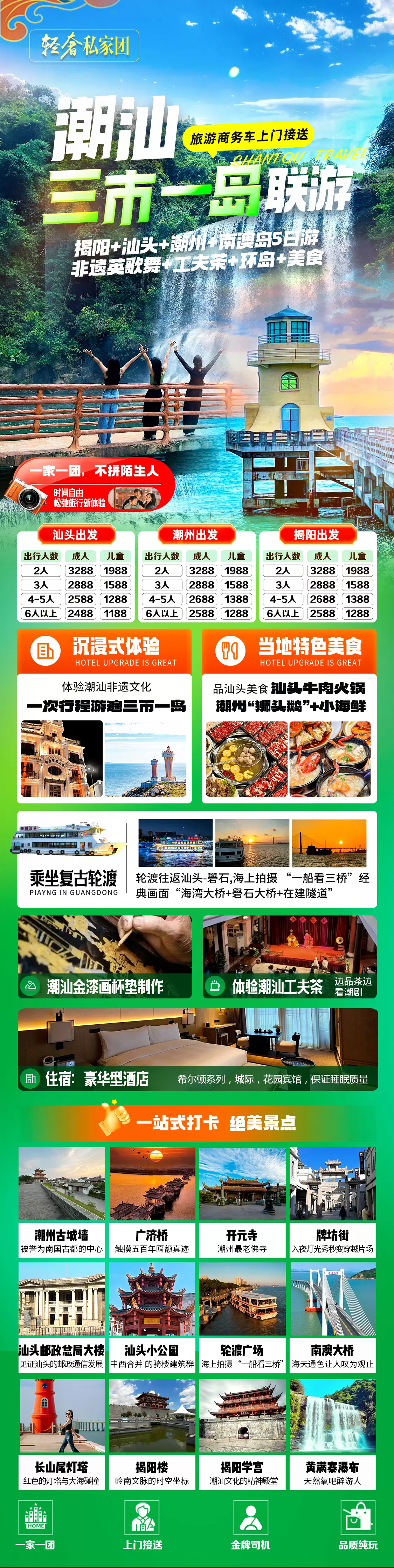 【私家团】汕头小公园+潮州广济桥+汕头南澳岛+揭阳学宫5日游【上门接送+非遗英歌舞+工夫茶+环岛+美食E6】