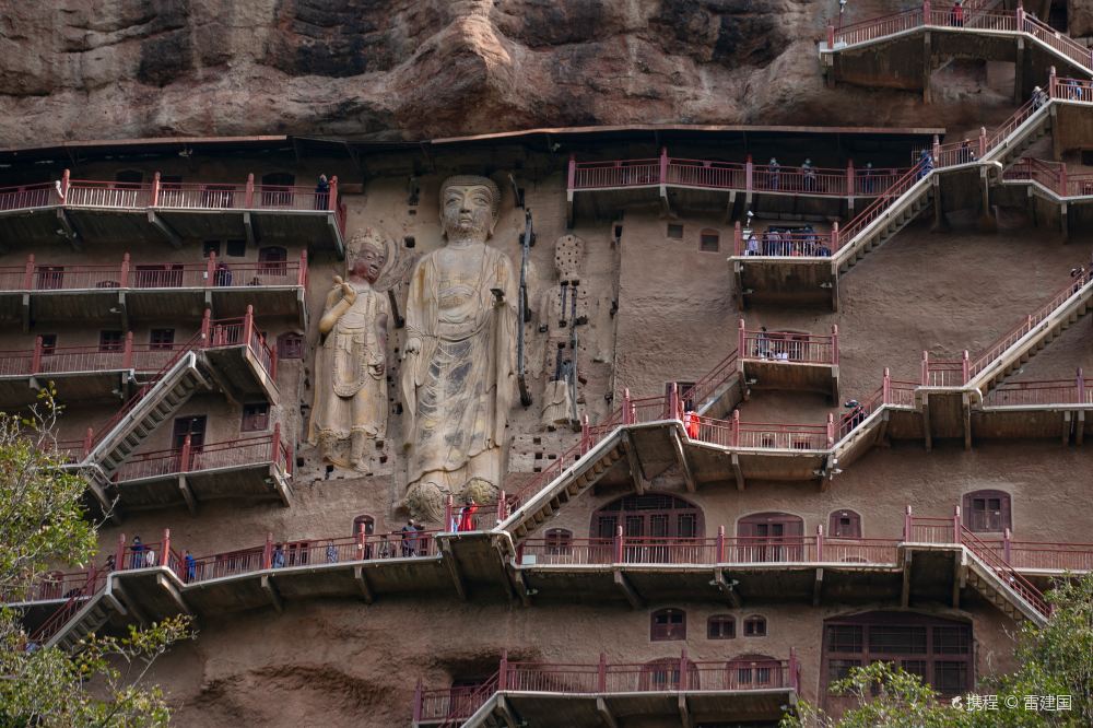 ▲ 麦积山石窟是麦积山风景名胜区重要景点,国家5A级旅游景区,麦积山石窟为中国四大石窟之一,其它三窟为:龙门石窟、云冈石窟和敦煌莫高窟。麦积山石窟属全国重点文物保护单位,也是闻名世界的艺术宝库。麦积山位于甘肃省天水市东南约35公里处,是我国秦岭山脉西端小陇山中的一座奇峰,海拔 1742 米,但山高离地面只有 142 米,山的形状奇特,孤峰突起,犹如麦,因此人们称之为麦积山。麦积山石窟(1 张)麦积山石窟风景照(16 张)麦积山[1]周围风景秀丽,山峦上密布着翠柏苍松,野花茂草。