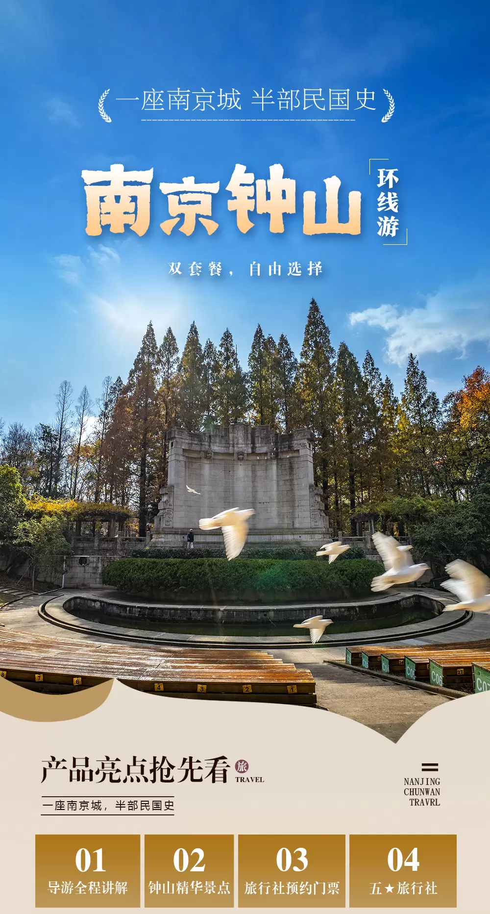 南京总统府+钟山风景名胜区+明孝陵+梧桐大道+中山陵+美龄宫+音乐台一日游【赠送小交通+自选套餐】
