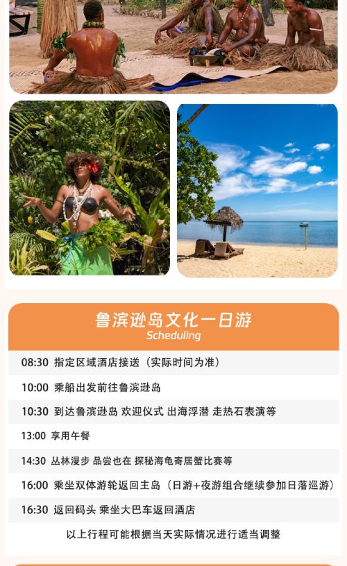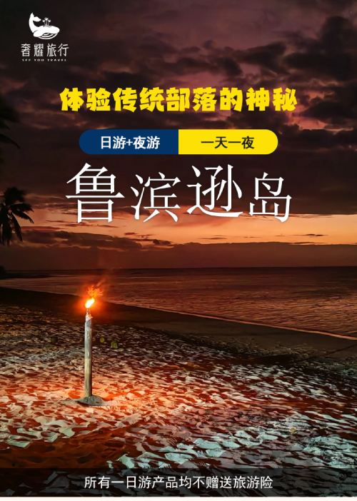 斐济鲁滨逊岛一日游【Robinson鲁滨逊岛/火把舞+大餐】【登上Robinson 鲁滨逊岛参观传统部落村庄,看寄居蟹比赛、品尝美味椰子】
