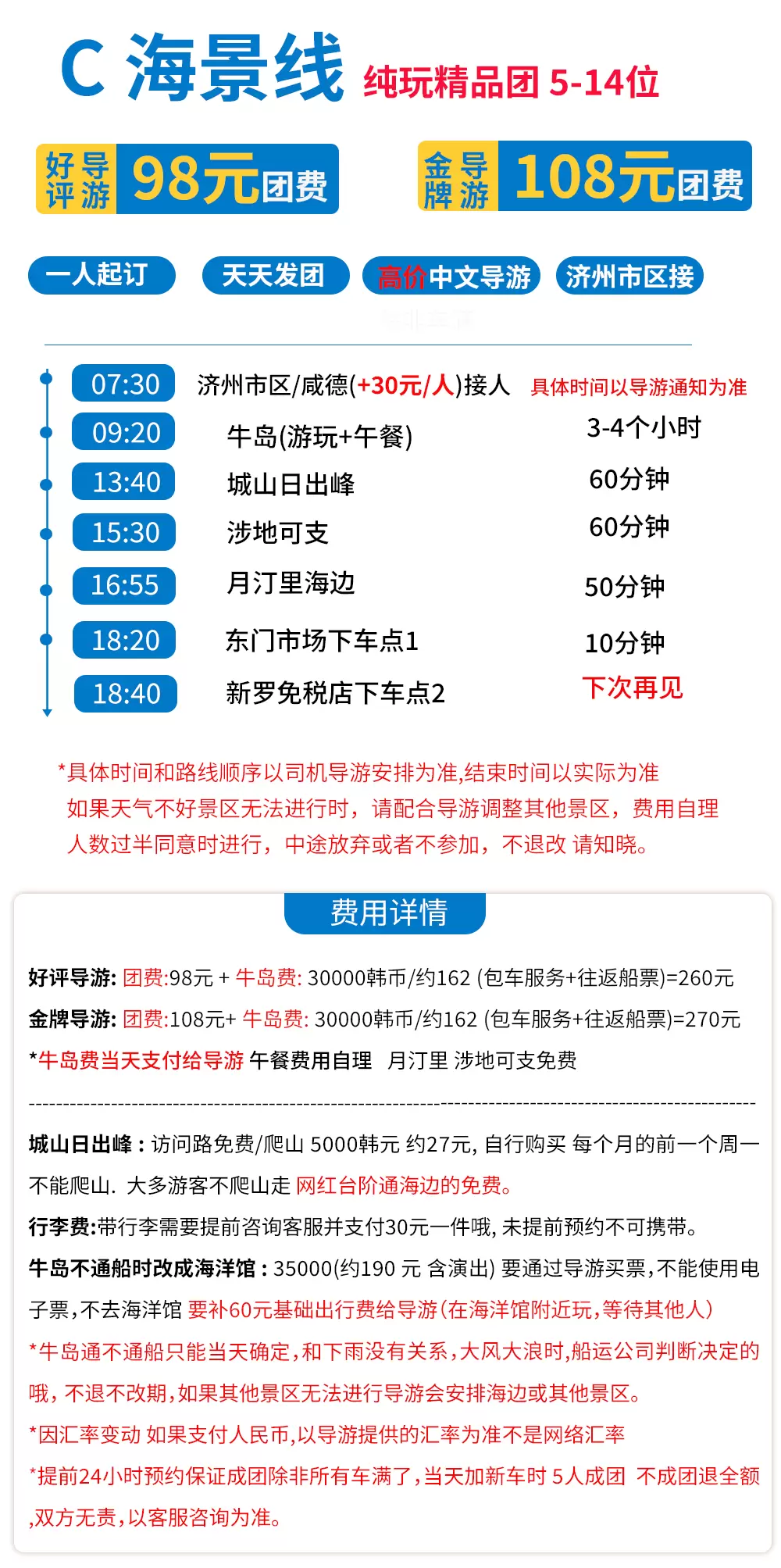 济州岛牛岛+城山日出峰+涉地可支+月汀里海边+牛岛一日游【5-14位 纯玩精品小团 好评高价导游】