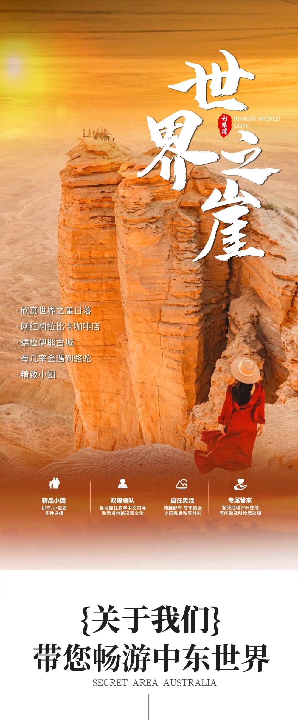 利雅得世界之崖+喂骆驼+打卡阿拉比卡咖啡店一日游 花少同款【一次前往世界之崖的旅行将成为难忘的回忆,值得一生珍藏,可以近距离观察奇特的地质构造,增长自然知识】