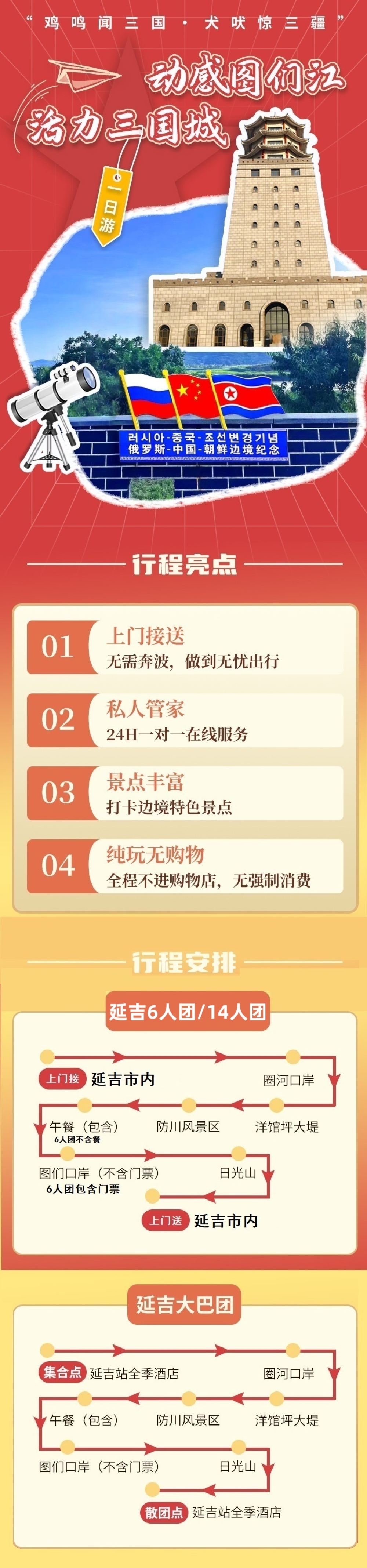 防川一眼望三国+图们口岸纯玩一日游+小拼团上门接+大团含导游【纯玩无购物:咱家东北本地人,有啥说啥的敞亮人,重来不掖着藏着】