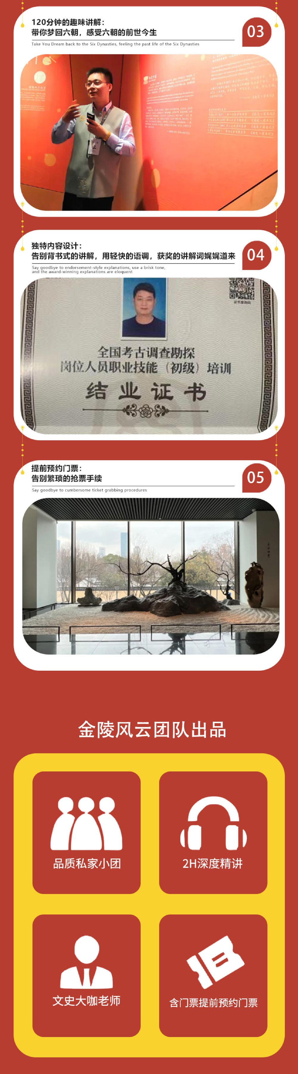 5.除六朝博物馆门票和人工讲解费以外,个人往返的交通费,餐食费等一切费用均不包含。