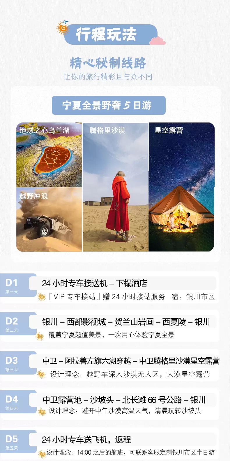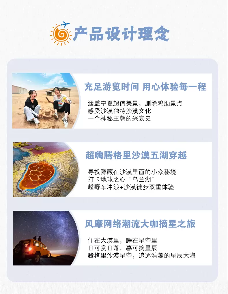 银川腾格里沙漠五湖穿越+星空露营亲子五日游【拼小团/大漠星空露营/越野车五湖连穿/精品小团/纯玩/亲子游】