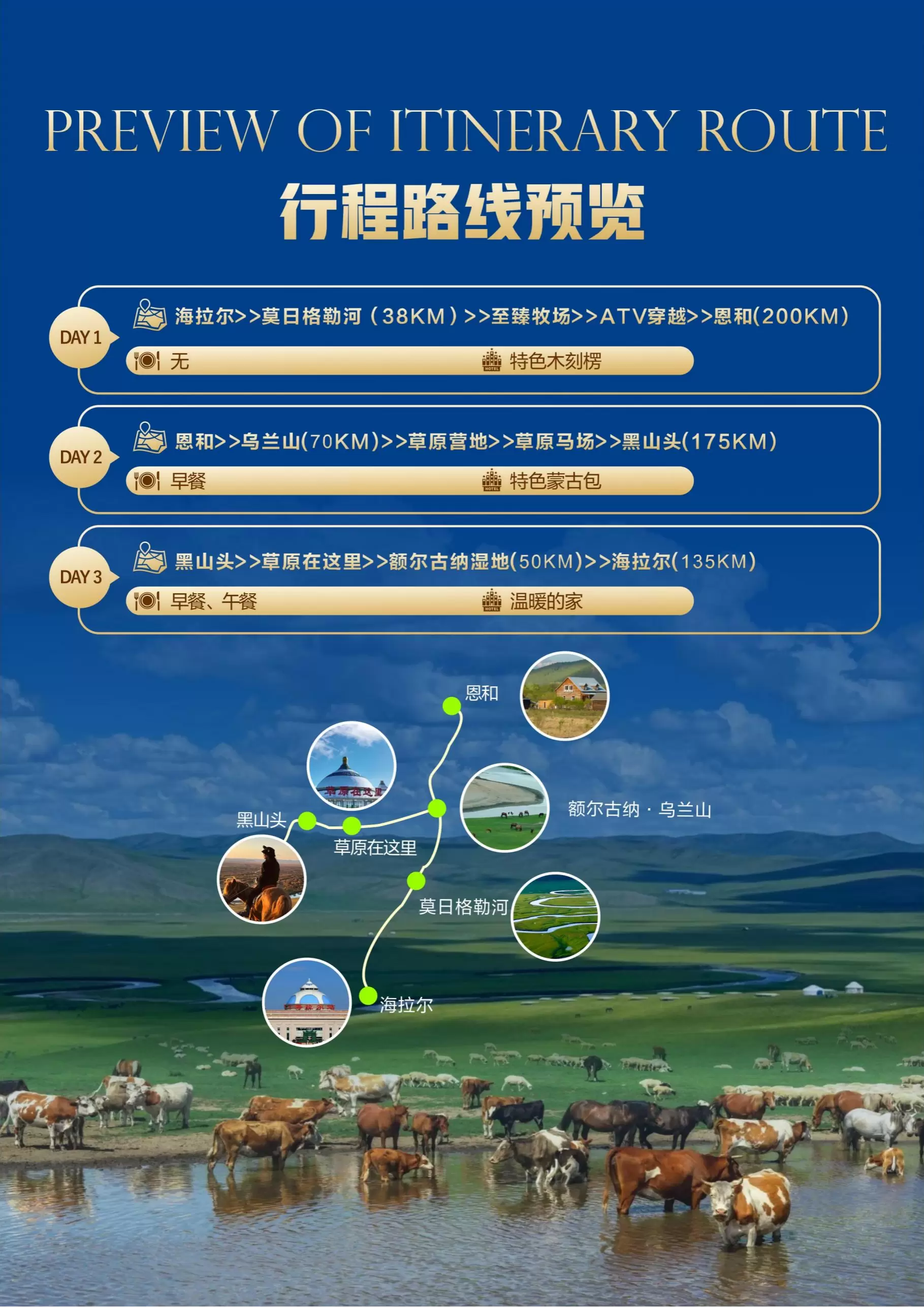 天骄之路·呼伦贝尔3天2晚深度穿越之旅【2-6人小团丨航拍、ATV穿越、至臻牧场私享体验丨住蒙古包】