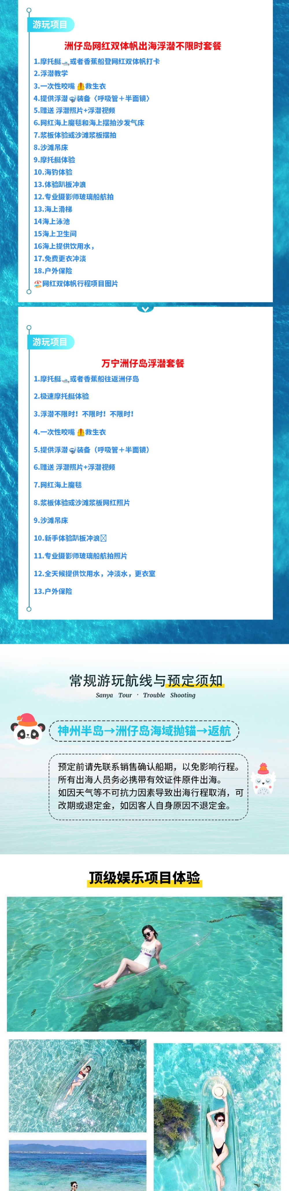 万宁洲仔岛出海浮潜共享帆船滑梯泳池一日游浮潜/摩托艇/香蕉船【[纯玩无购物]游玩灵活,专注体验风景玩乐,轻松享受纯粹游玩】