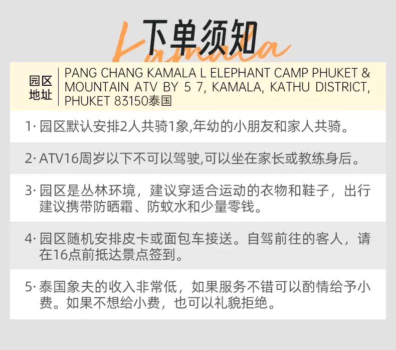 【当天可定】普吉岛卡马拉海景象园半日游 驾驶ATV/骑大象/大象洗澡/无鞍骑象 酒店接送 可选场次