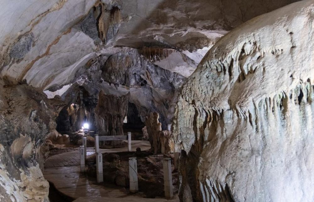 ▲ 坦江溶洞:是万荣盛名的岩洞,主洞室里通过石灰岩壁上开凿的豁口可以欣赏到河谷绚丽的景色,还可在旁边的泄湖戏水游泳。