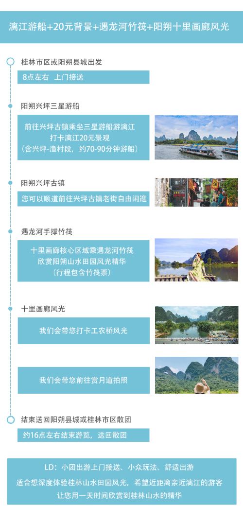 阳朔三星游船+二十元背景+遇龙河竹筏漂流一日游【纯玩小拼团】【桂林/阳朔两地均可出发,当地司导上门接送】