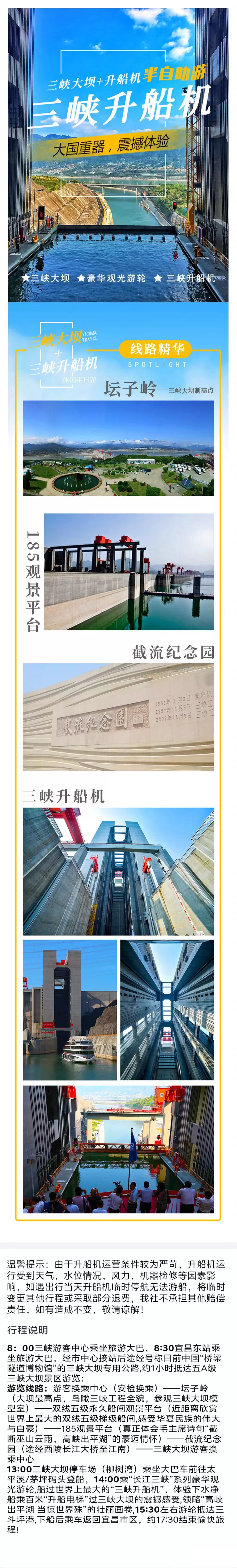 三峡垂直升船机+三峡大坝旅游区+185观景平台+坛子岭+截流纪念园一日游【乘游船,乘百米“升船电梯”过大坝】
