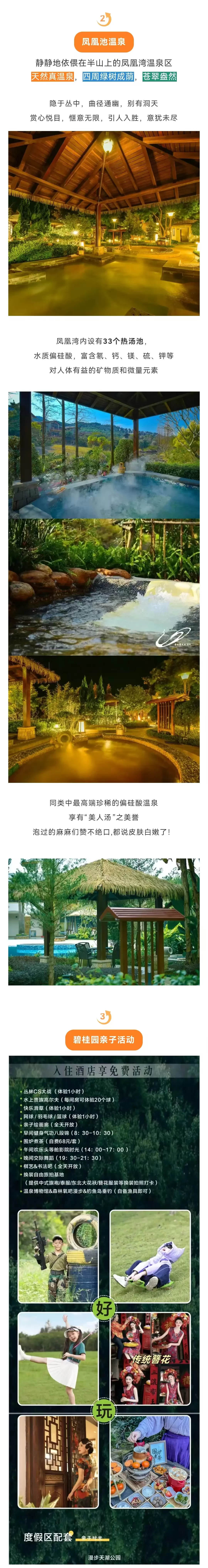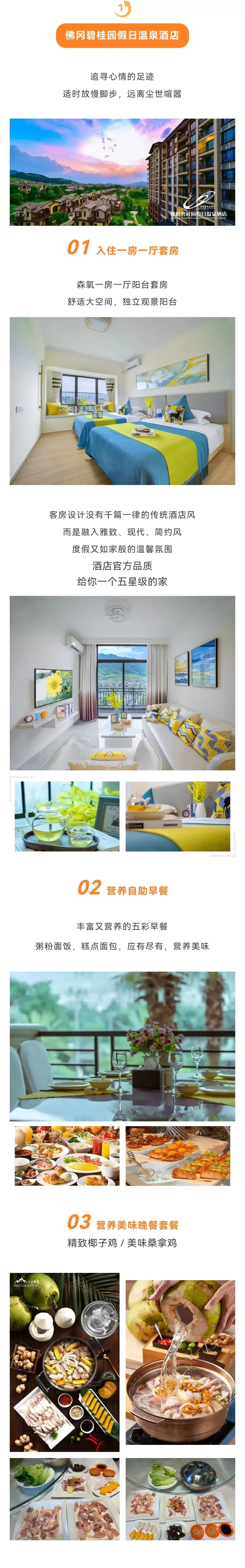 佛冈碧桂园假日温泉酒店1晚+2大2小(1.5米+1.2米)森波拉火山温泉/奇妙世界+酒店温泉+早餐