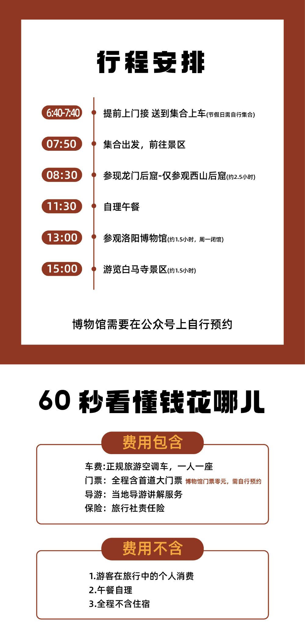 【老牌大社】洛阳龙门石窟+白马寺+洛阳博物馆一日游【[资深导游 全程讲解]】