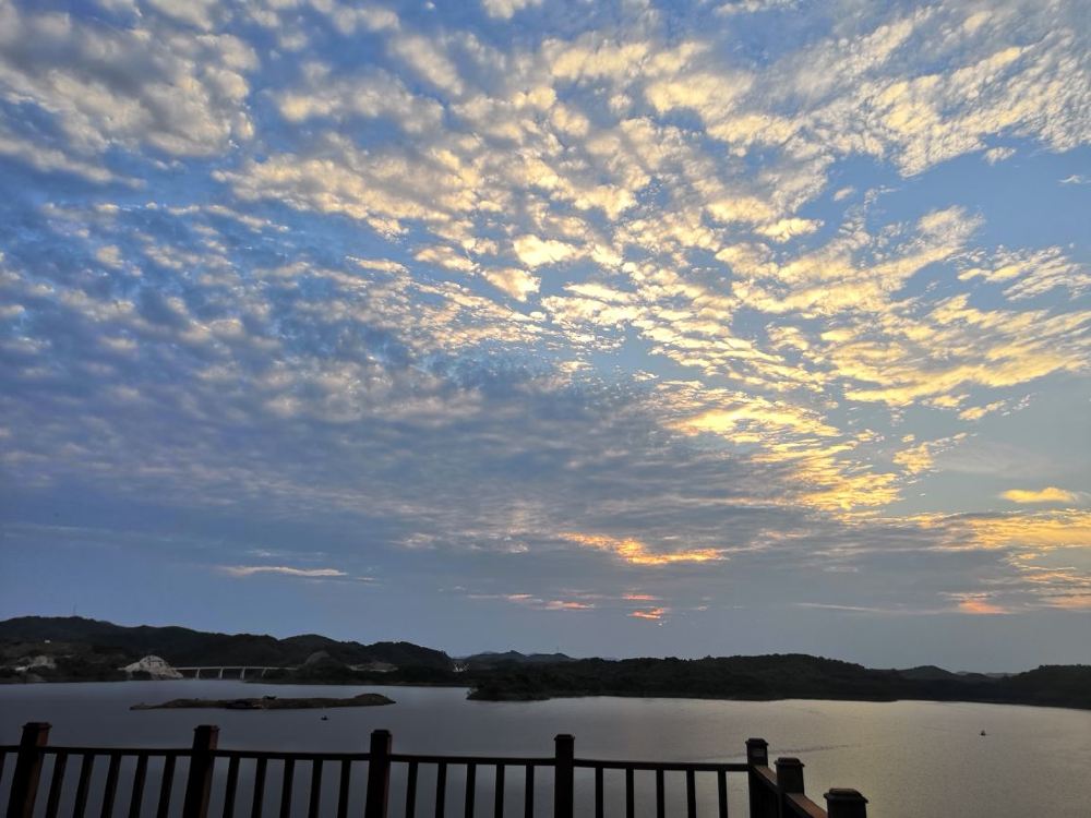 水库碧波万倾,美丽如画,奇山异石,独具姿彩。宽处水面达 20 余公里,烟波浩淼,天水一色,极目无涯,被称作“小太平洋”。丹江口大坝开闸放水时,坝上风平浪静,坝下水浪翻滚,奔腾咆哮,汹涌澎湃,蔚为壮观。