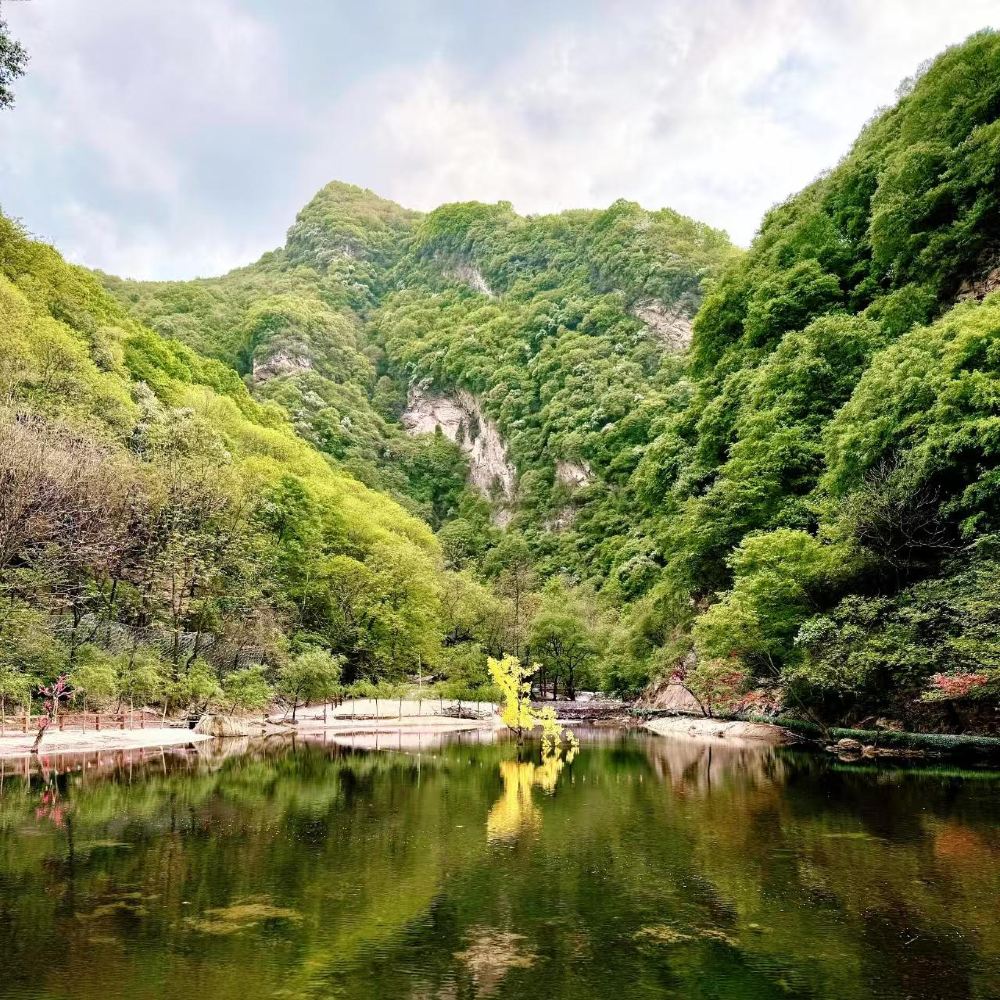 ▲ 森林覆盖率高达90%,生态环境接近原始。由红崖湖、石门峡、密林谷、潜龙寺、少华峰五大景区组成。